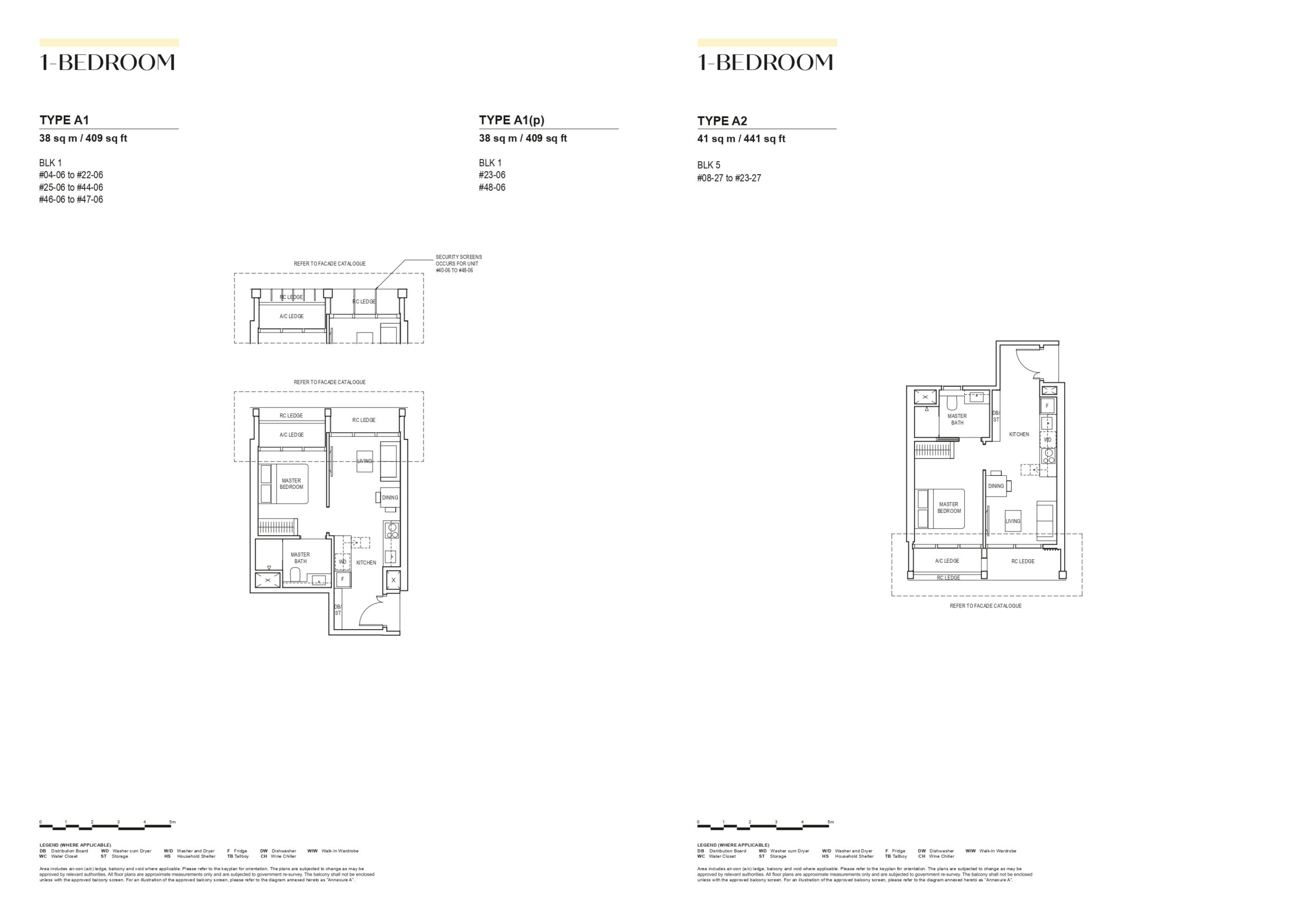 | 1 Bedroom | A | 99 | 38 – 43 | 409 – 463 |