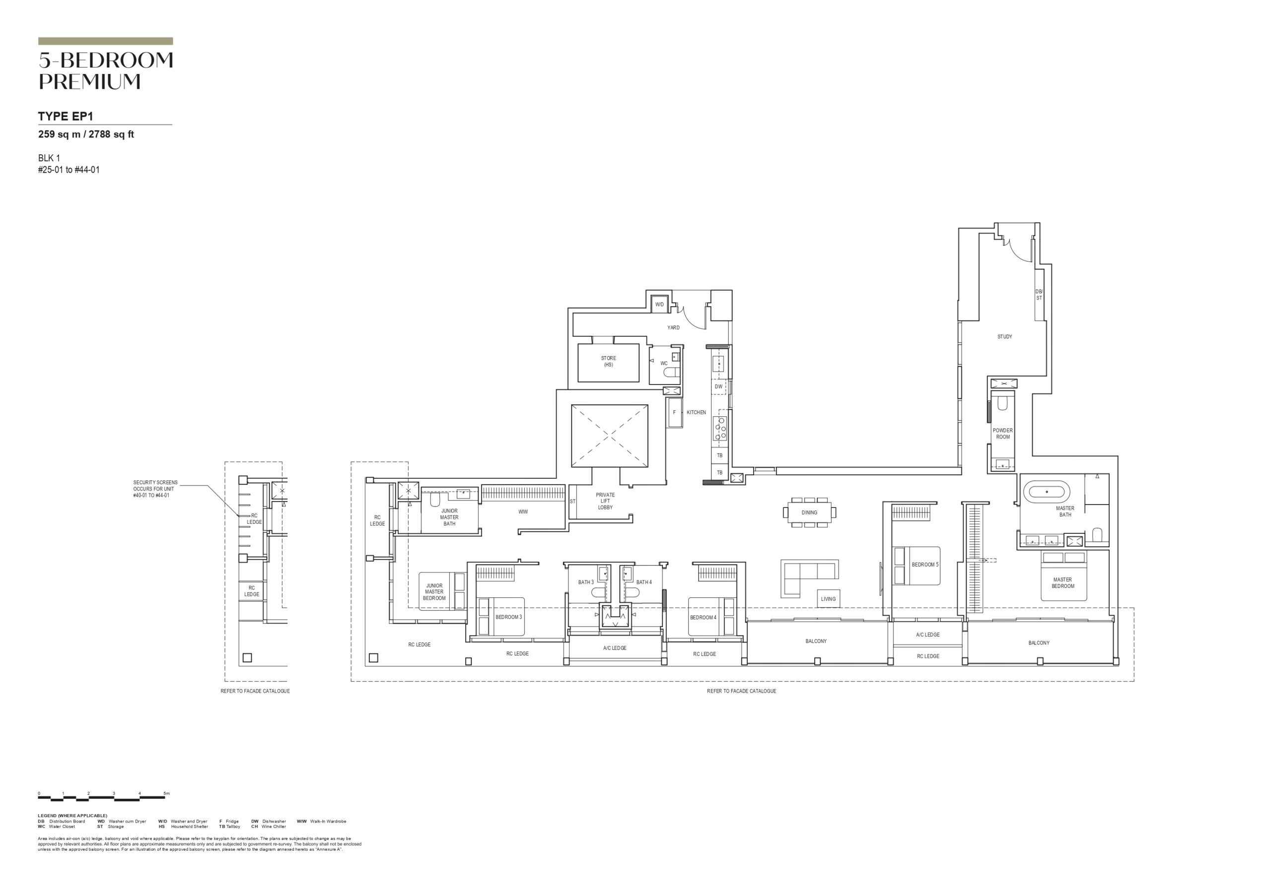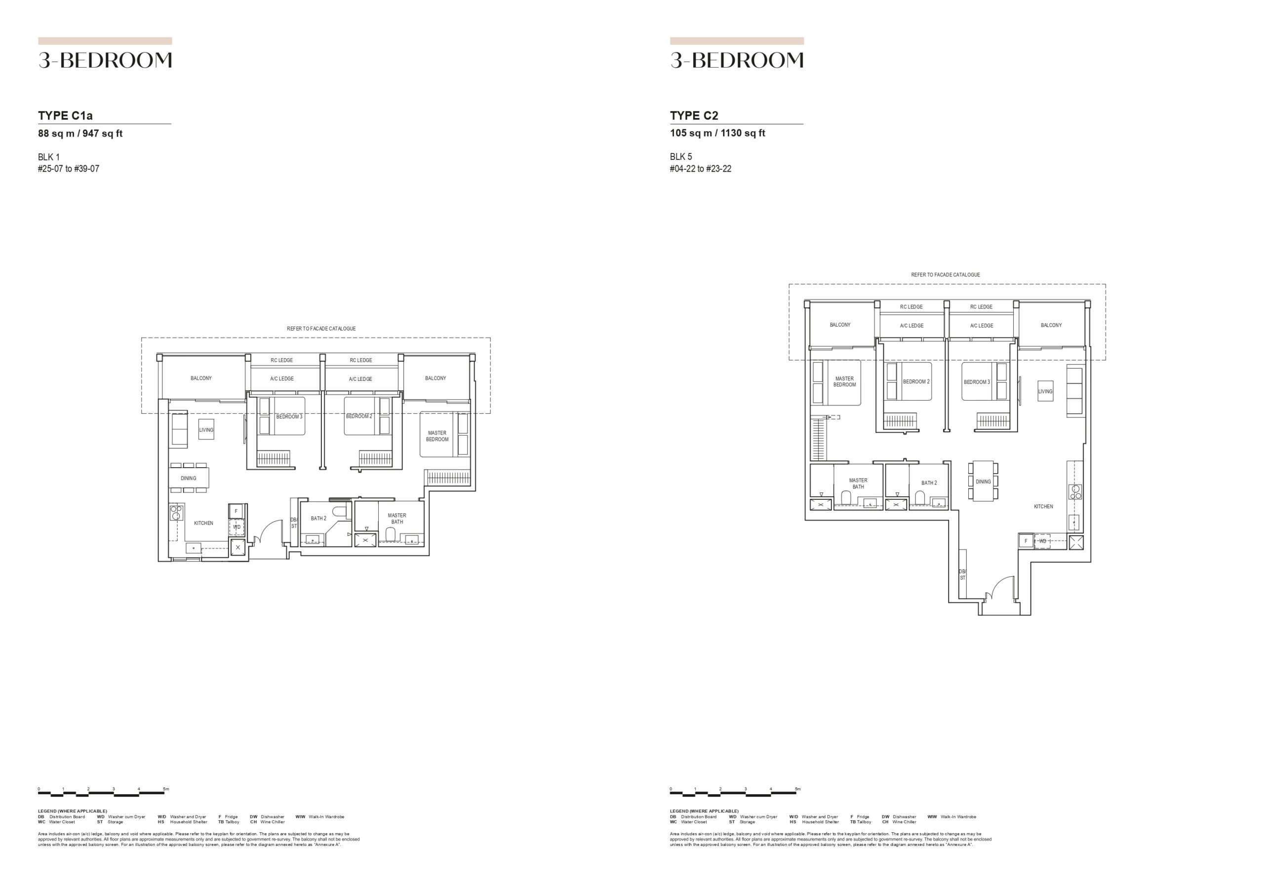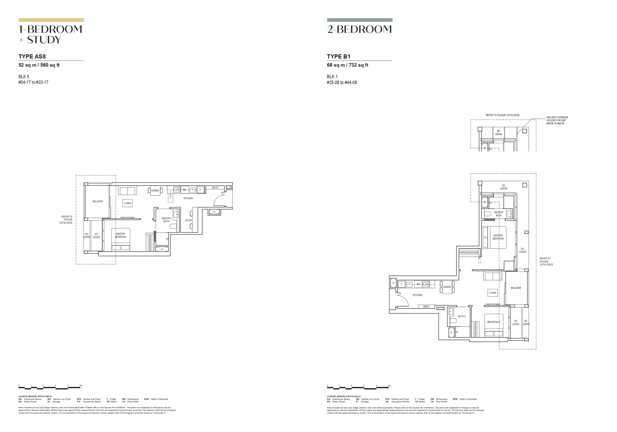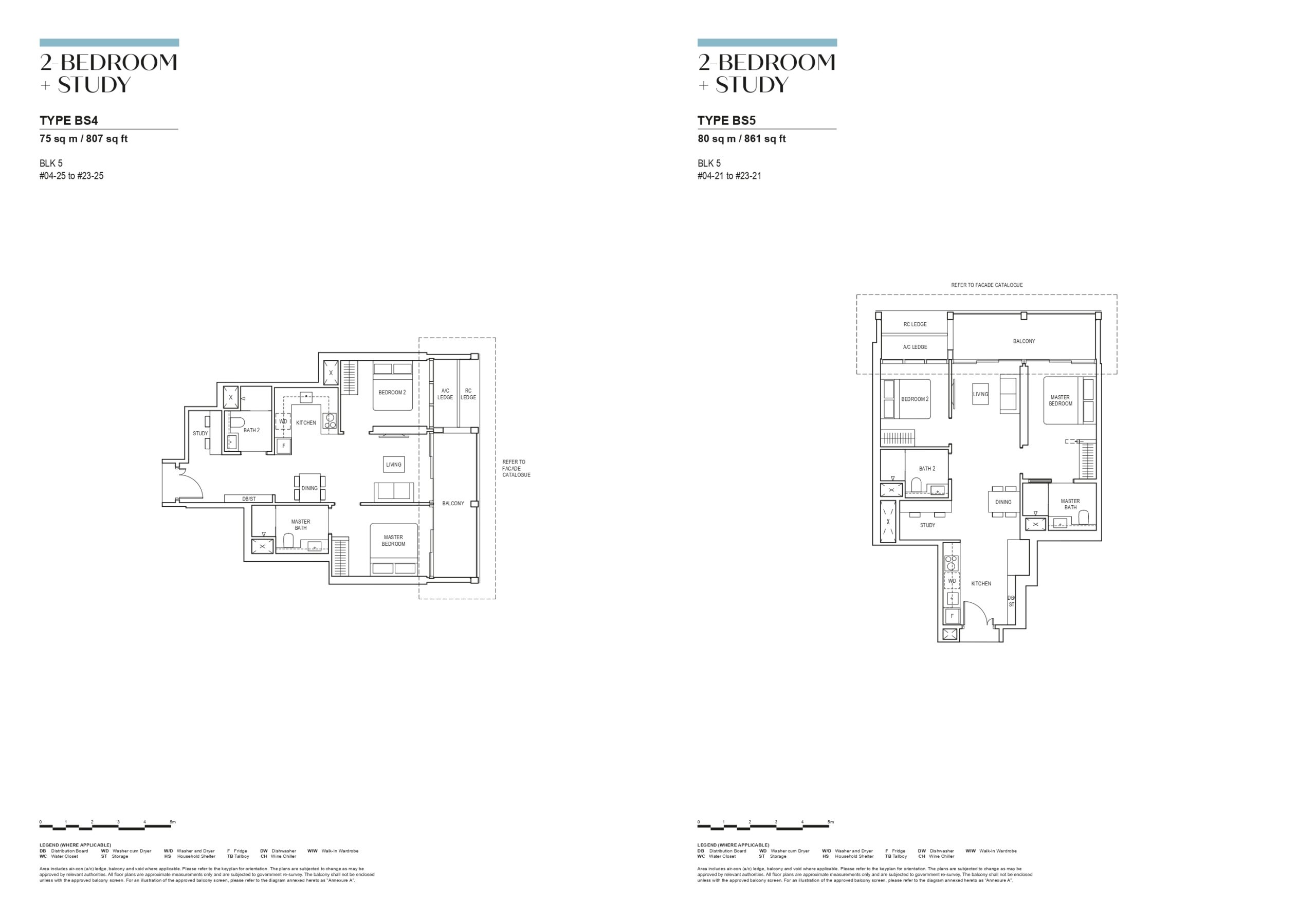 | 2 Bedroom + Study | BS | 163 | 68 – 82 | 732 – 883 |