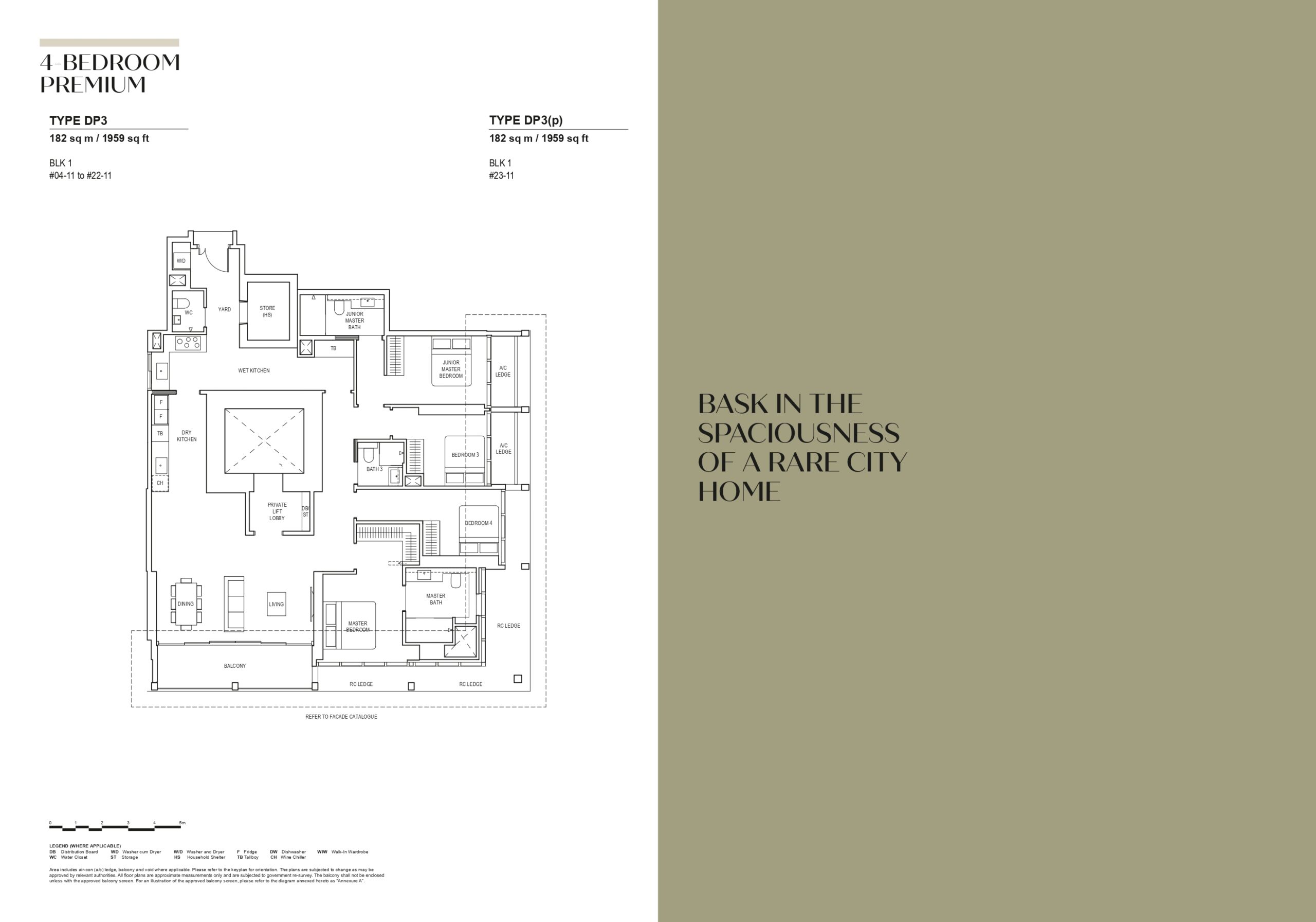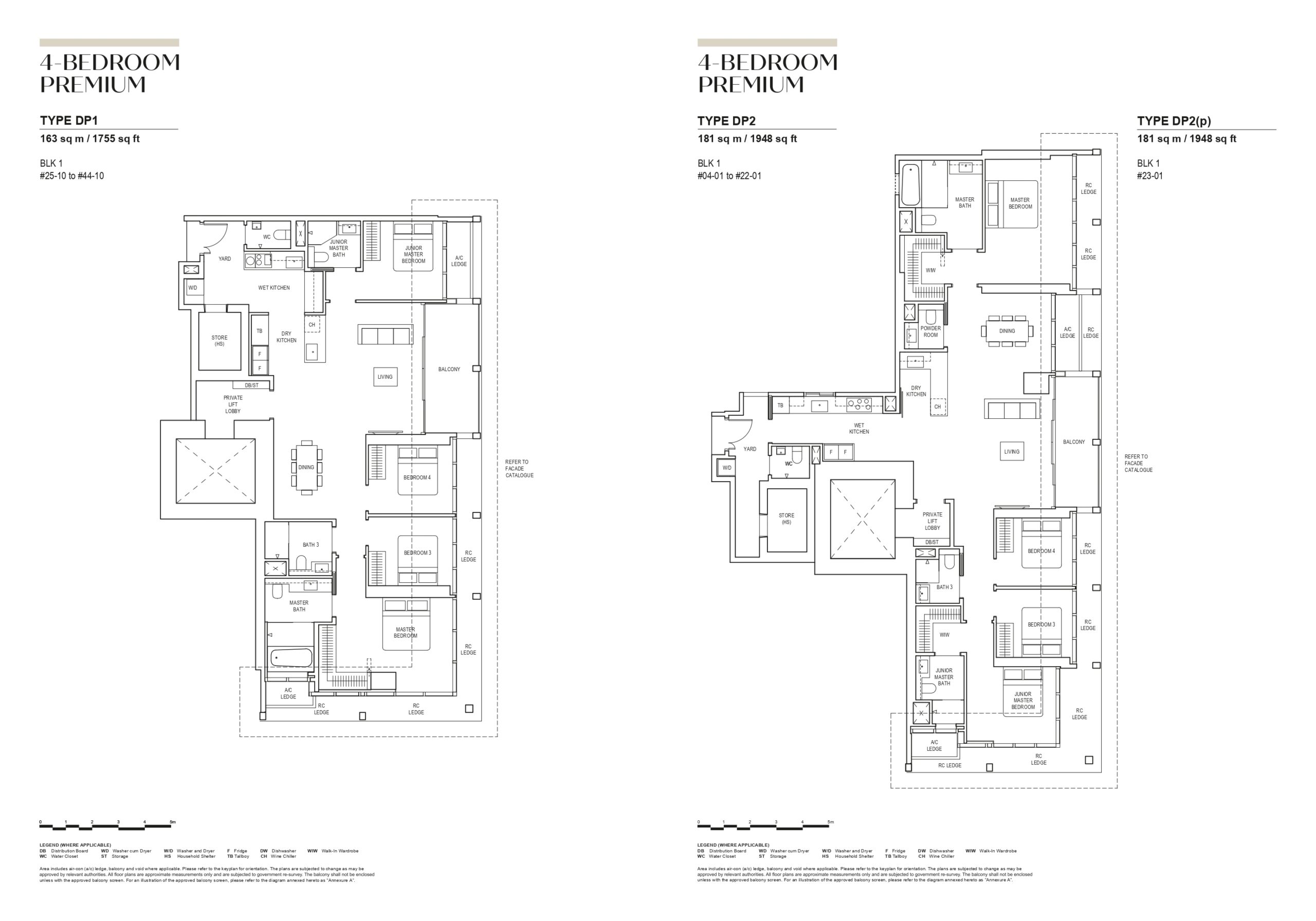 | 4 Bedroom Premium | DP | 60 | 163 – 182 | 1,755 – 1,959 |