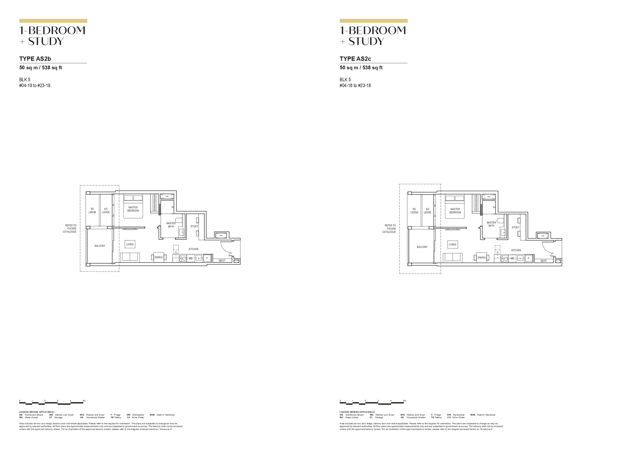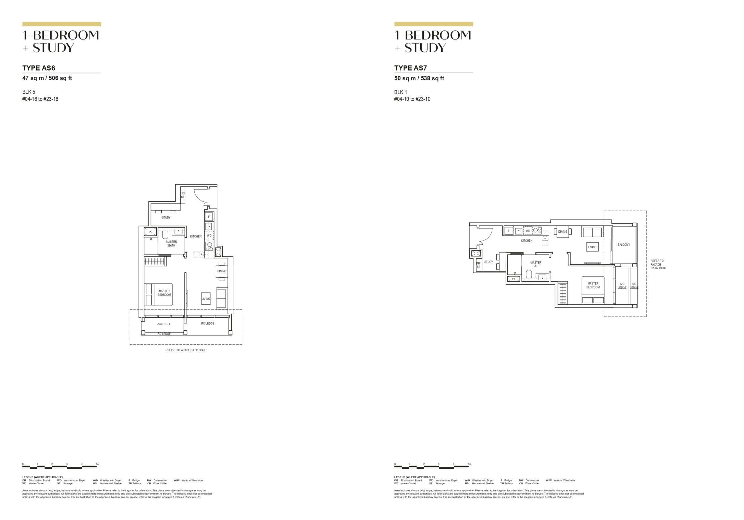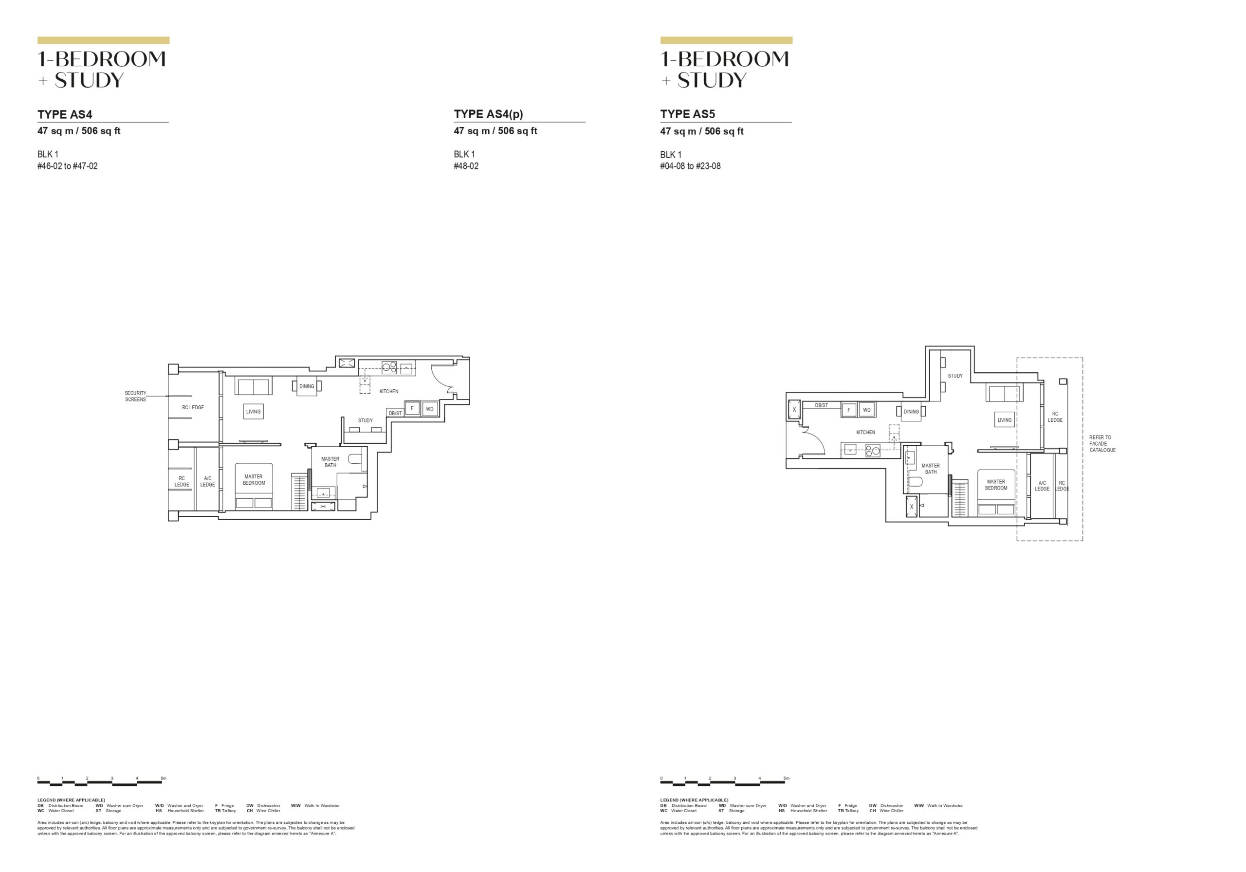 | 1 Bedroom + Study | AS | 229 | 44 – 52 | 474 – 560 |