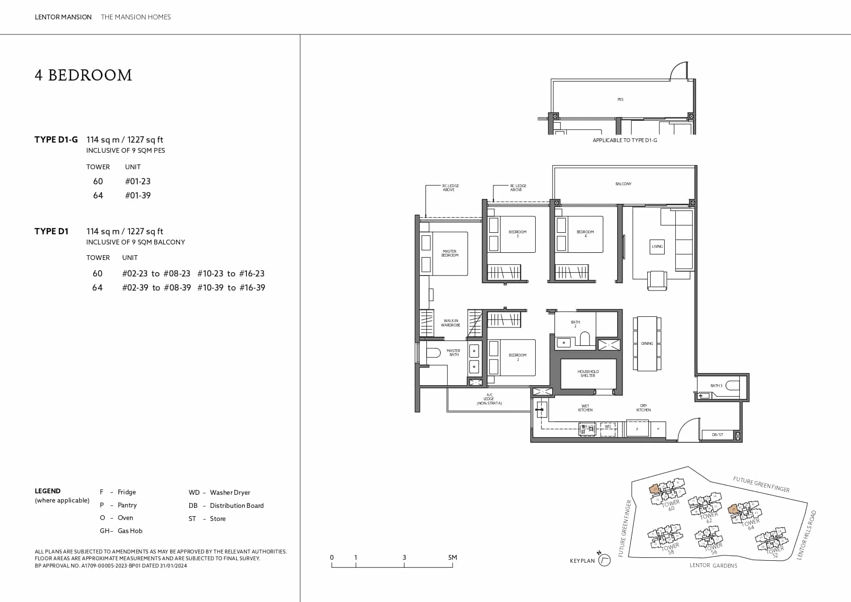 | 4 Bedroom | D | 75 | 114 | 1,227 |