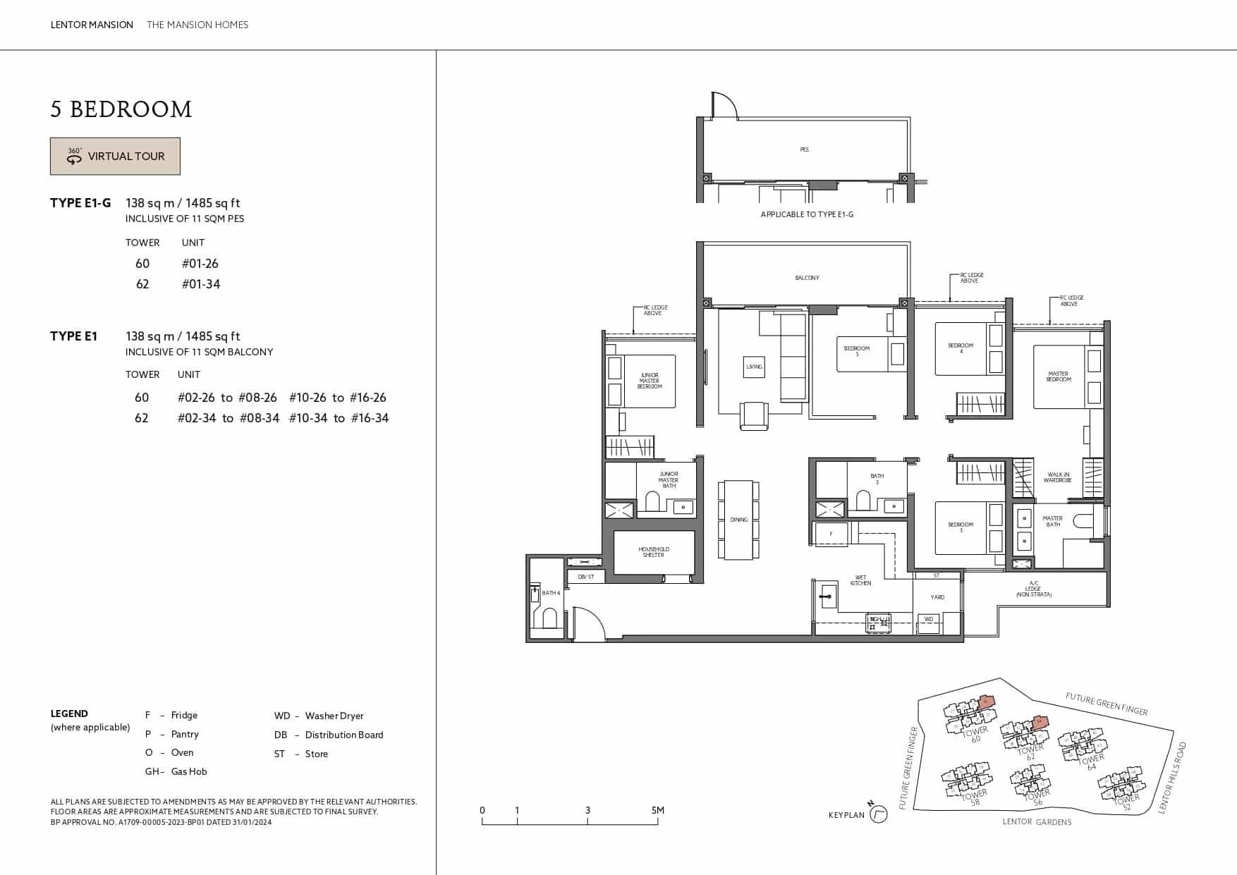 | 5 Bedroom | E | 45 | 138 – 140 | 1,485 – 1,507 |