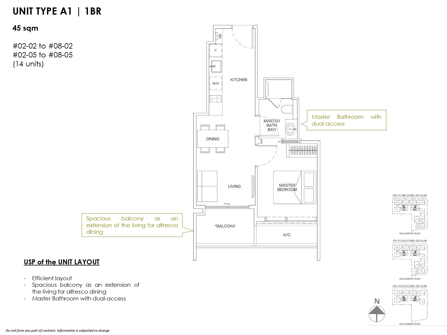 According to the Urban Redevelopment Authority (URA) master plan, the land facing Guillemard Road has a 5-storey height limit, while the land on Jalan Molek allows for up to 8 storeys. Therefore, the project will feature a mix of five-storey and eight-storey residential buildings, with the lower buildings at the main entrance on Guillemard Road. There will be landscaped decks on the 2nd and 6th floors, providing facilities and pools.