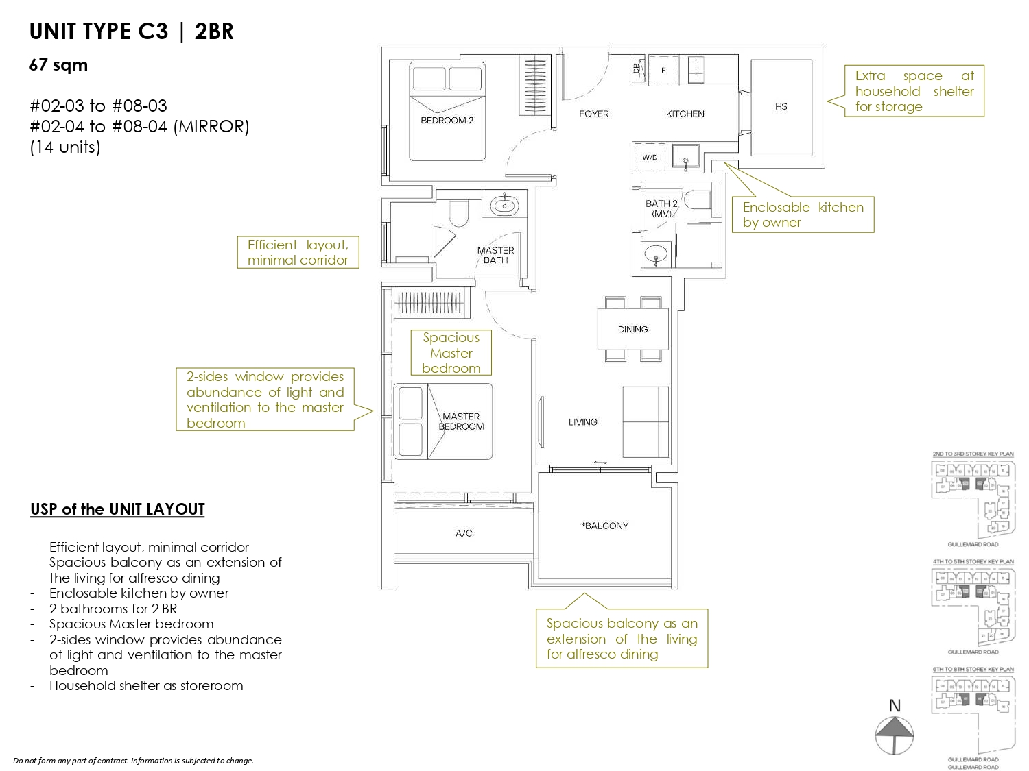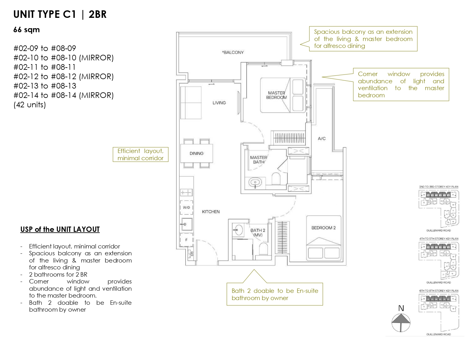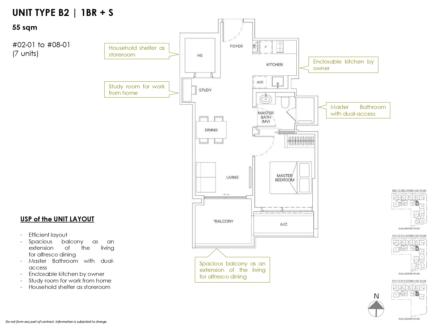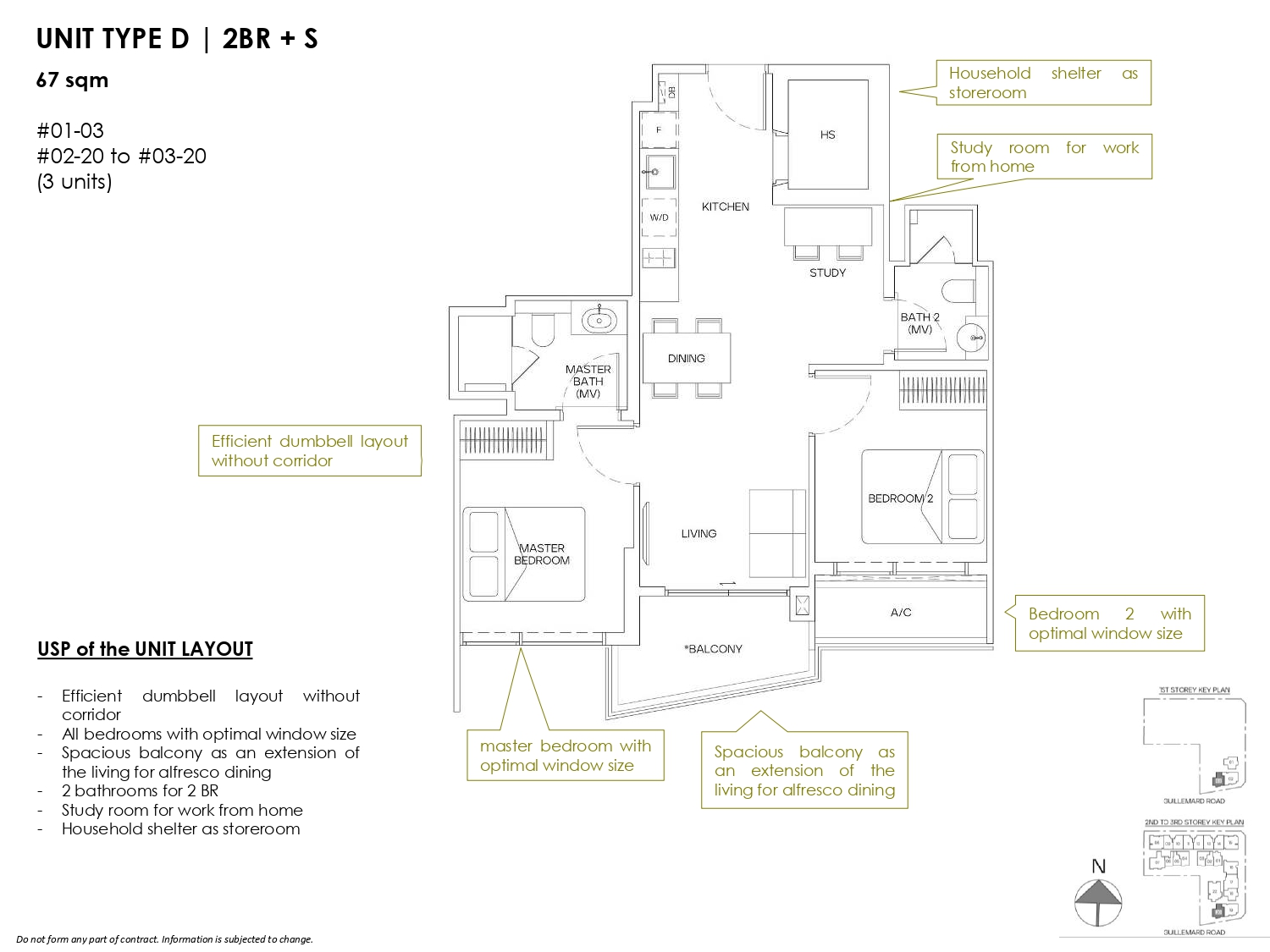 | 2 Bedroom + Study | BS | 3 | 67 | 721 |