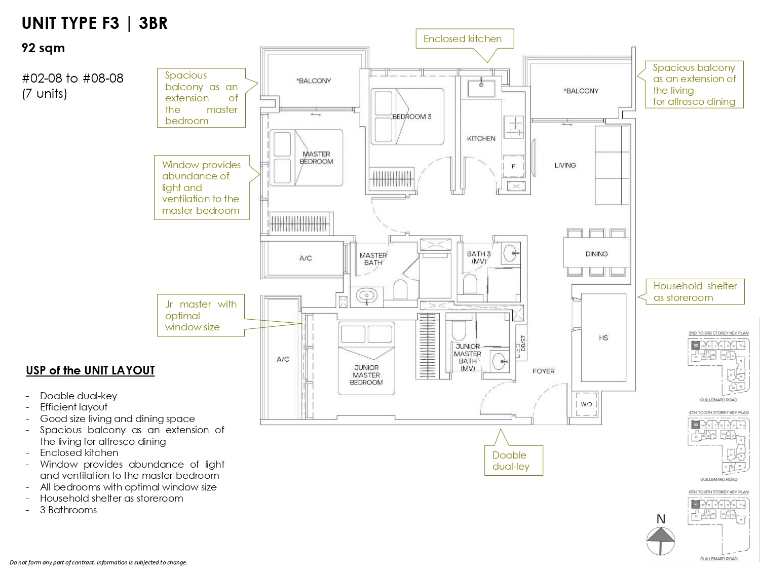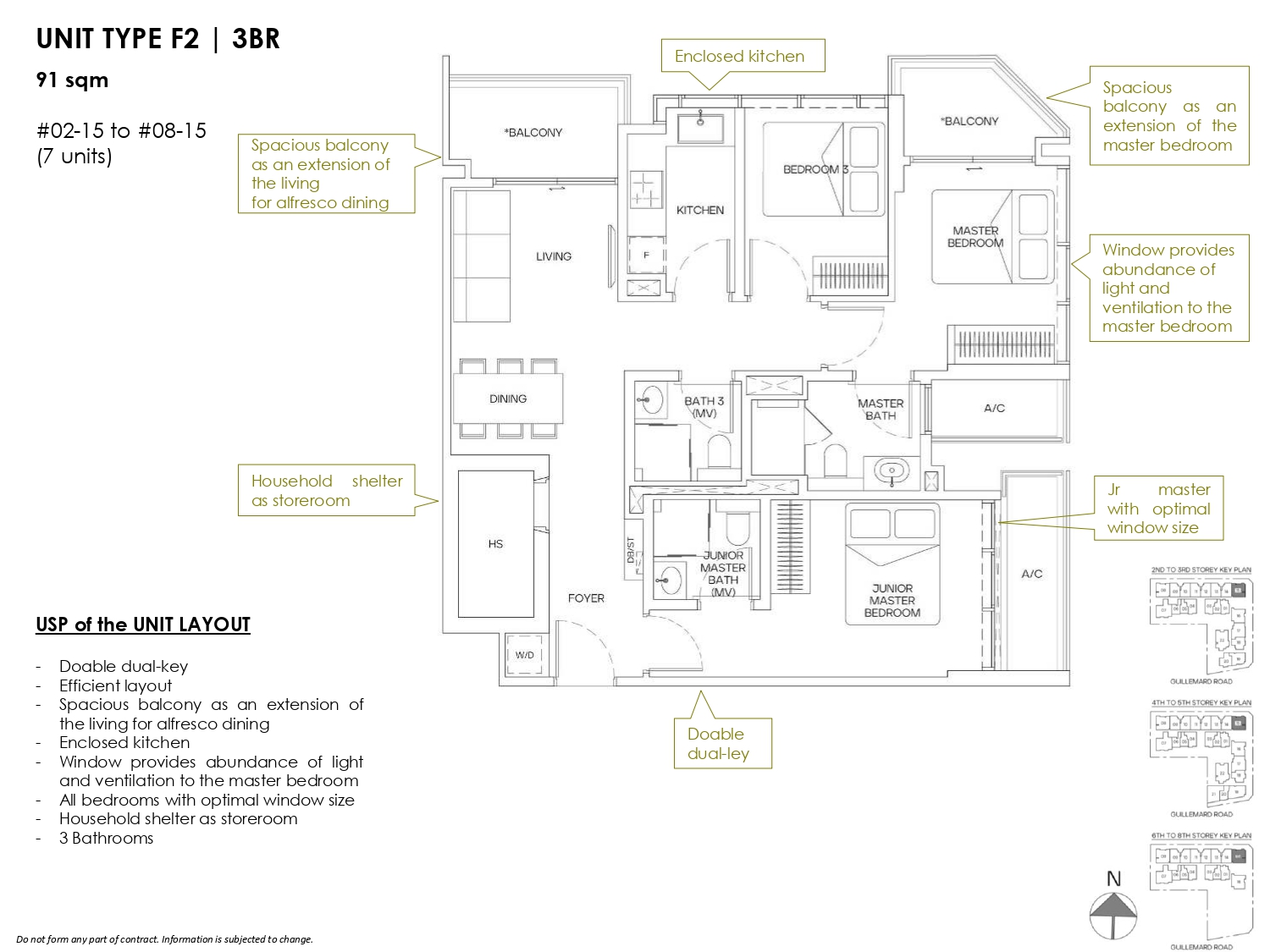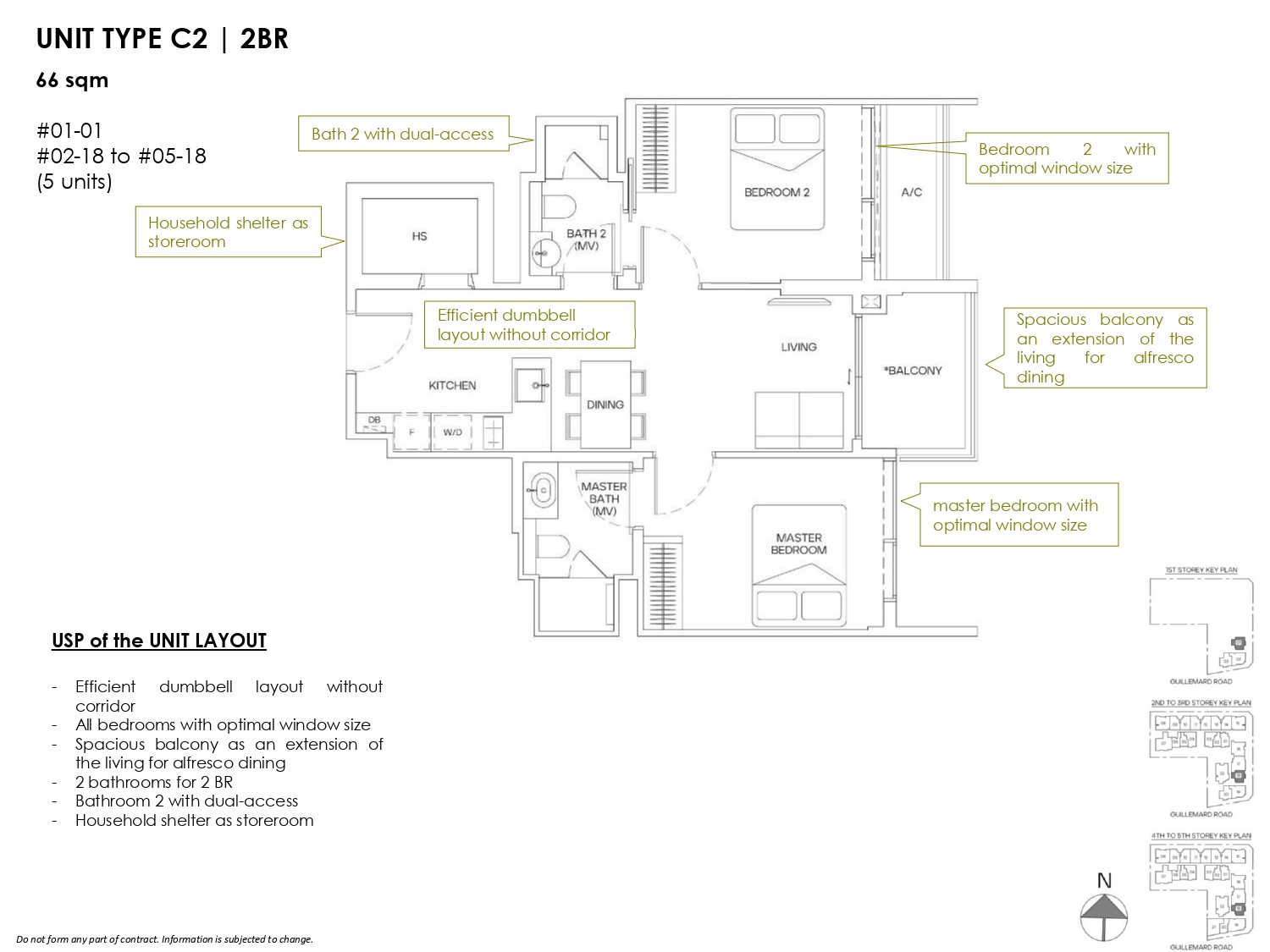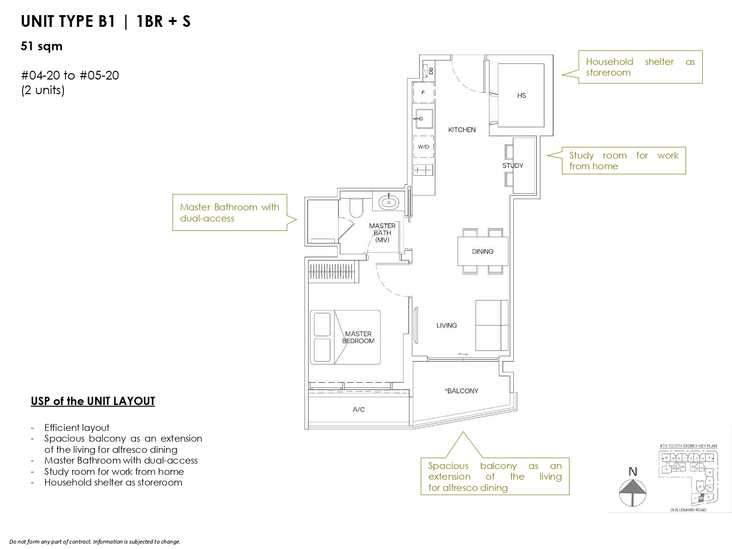 | 2 Bedroom + Study | BS | 3 | 67 | 721 |