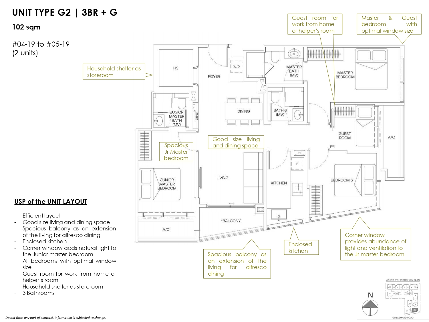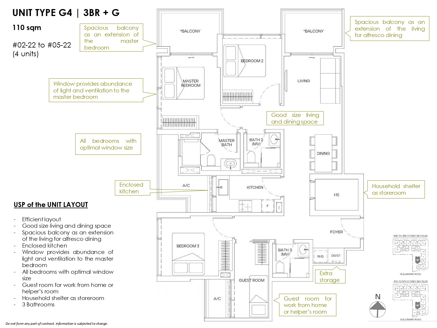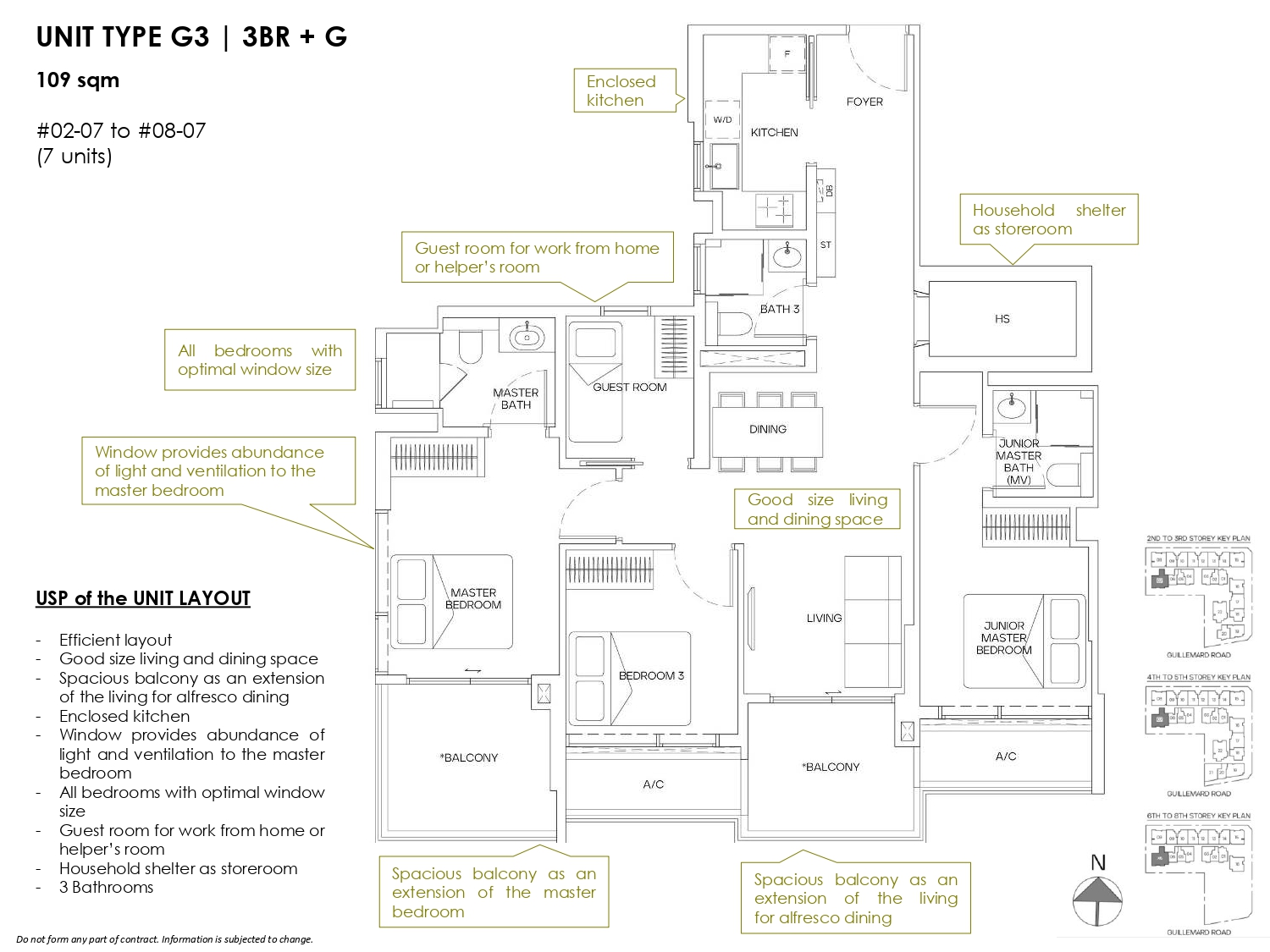 - 3 Bedroom + Guest, Type G3: 109 sq m (1173 sq ft)