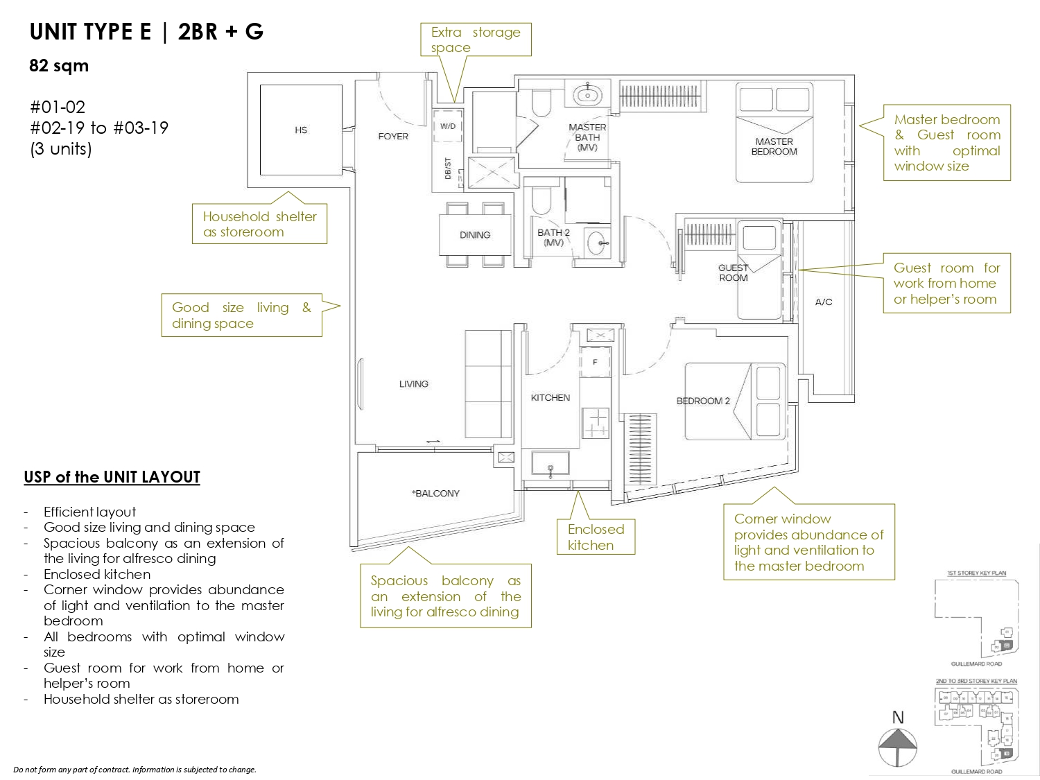 | 2 Bedroom + Guest | BG | 3 | 82 | 882 |