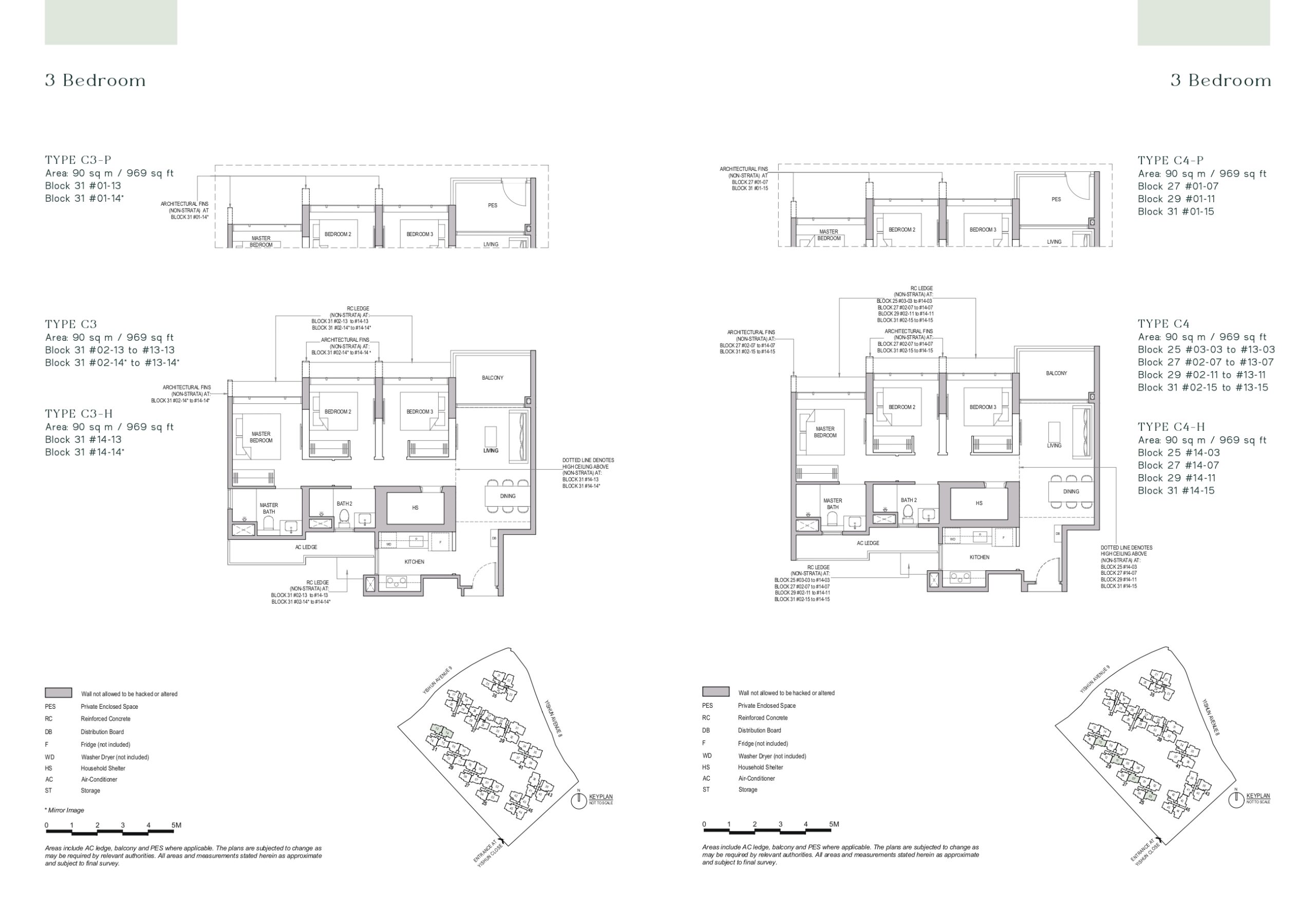 | 3 Bedroom | C1 – C5 | 958 – 980 | 6 | $318 |