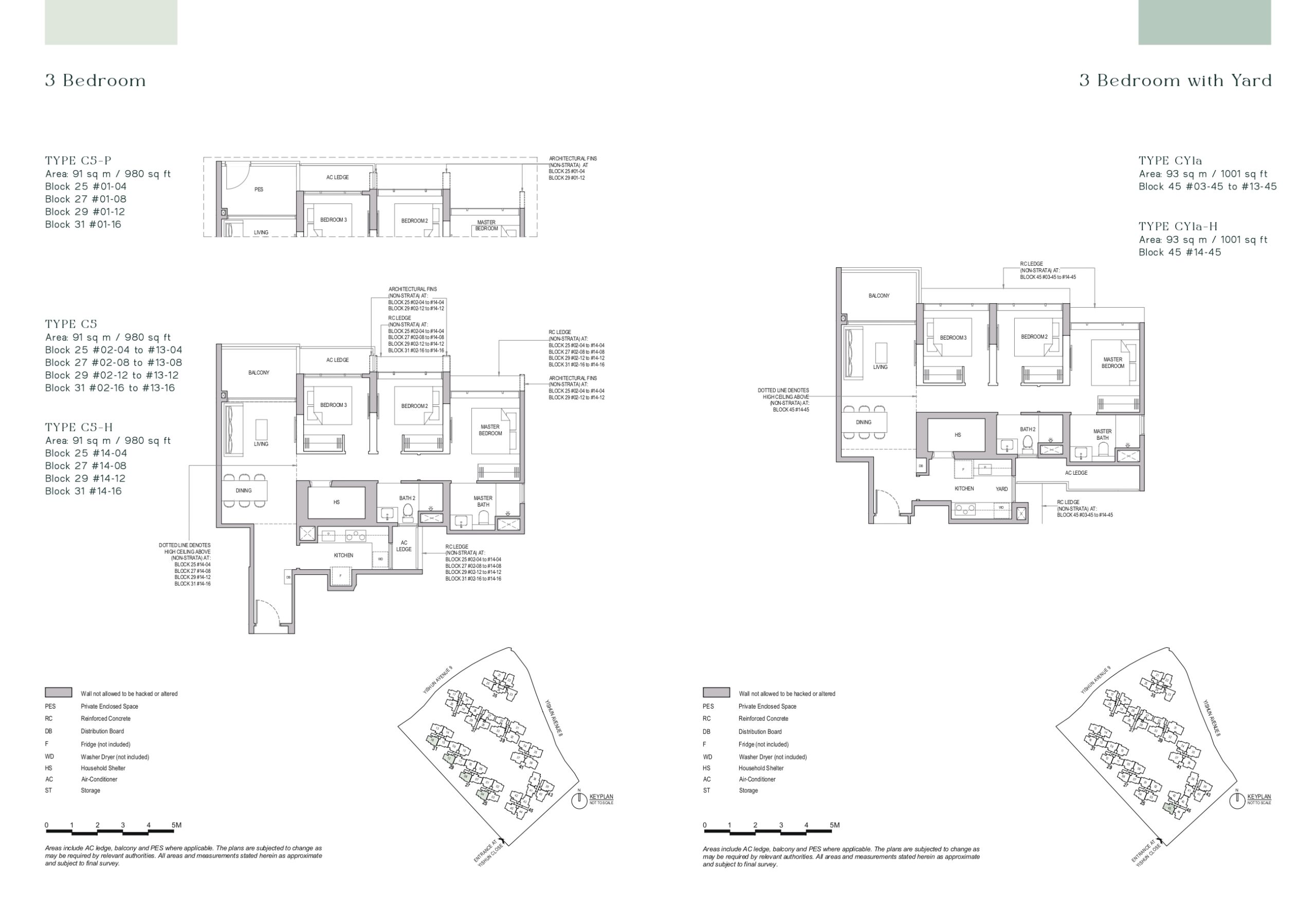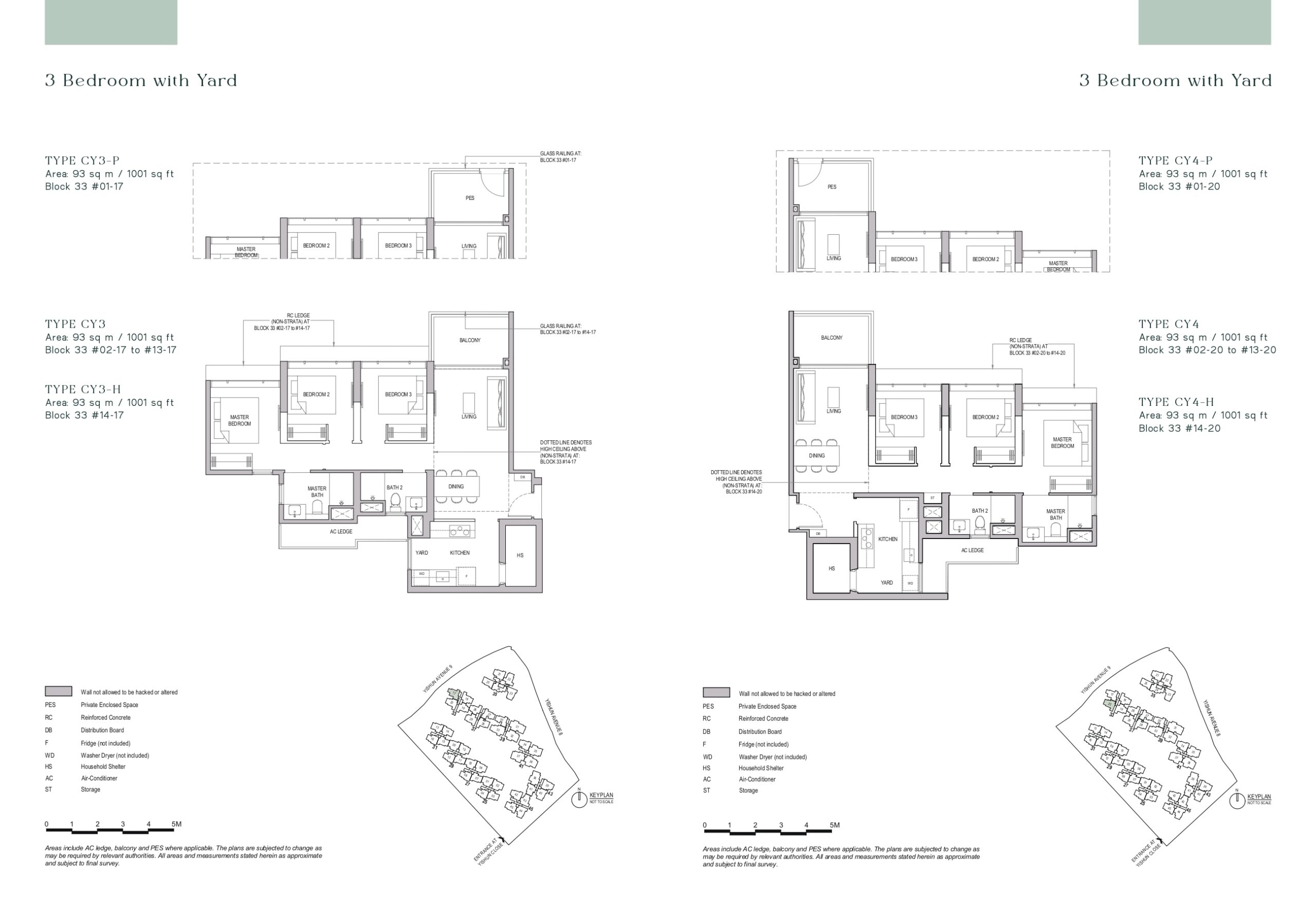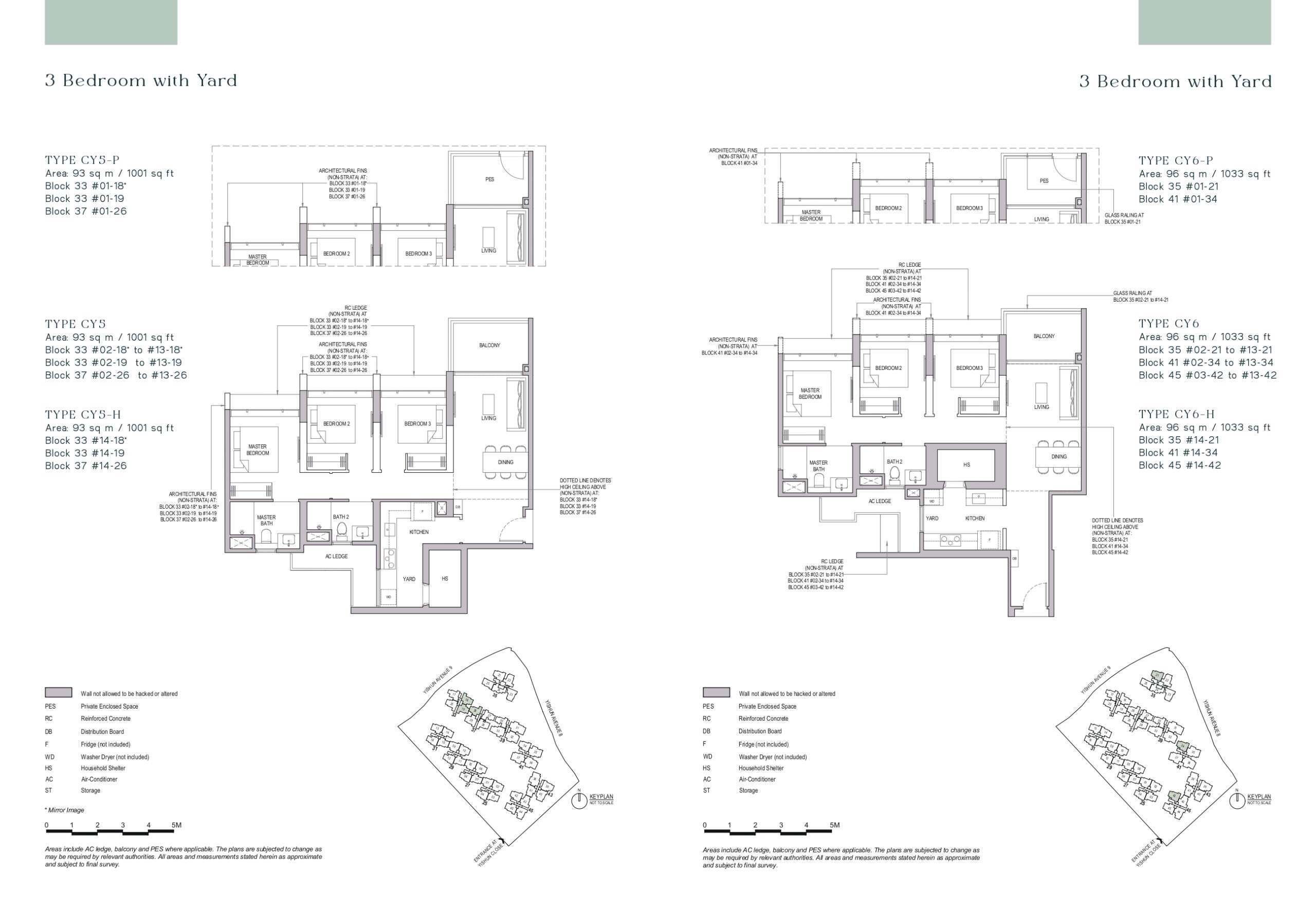 | 3 Bedroom + Yard | CY1 – CY5 |