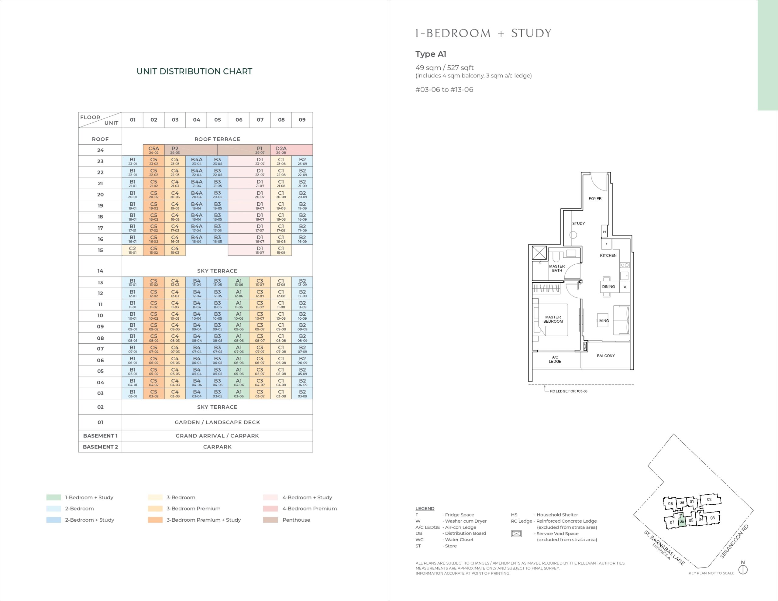 | 1 Bedroom + Study | A | 11 | 49 | 527 |