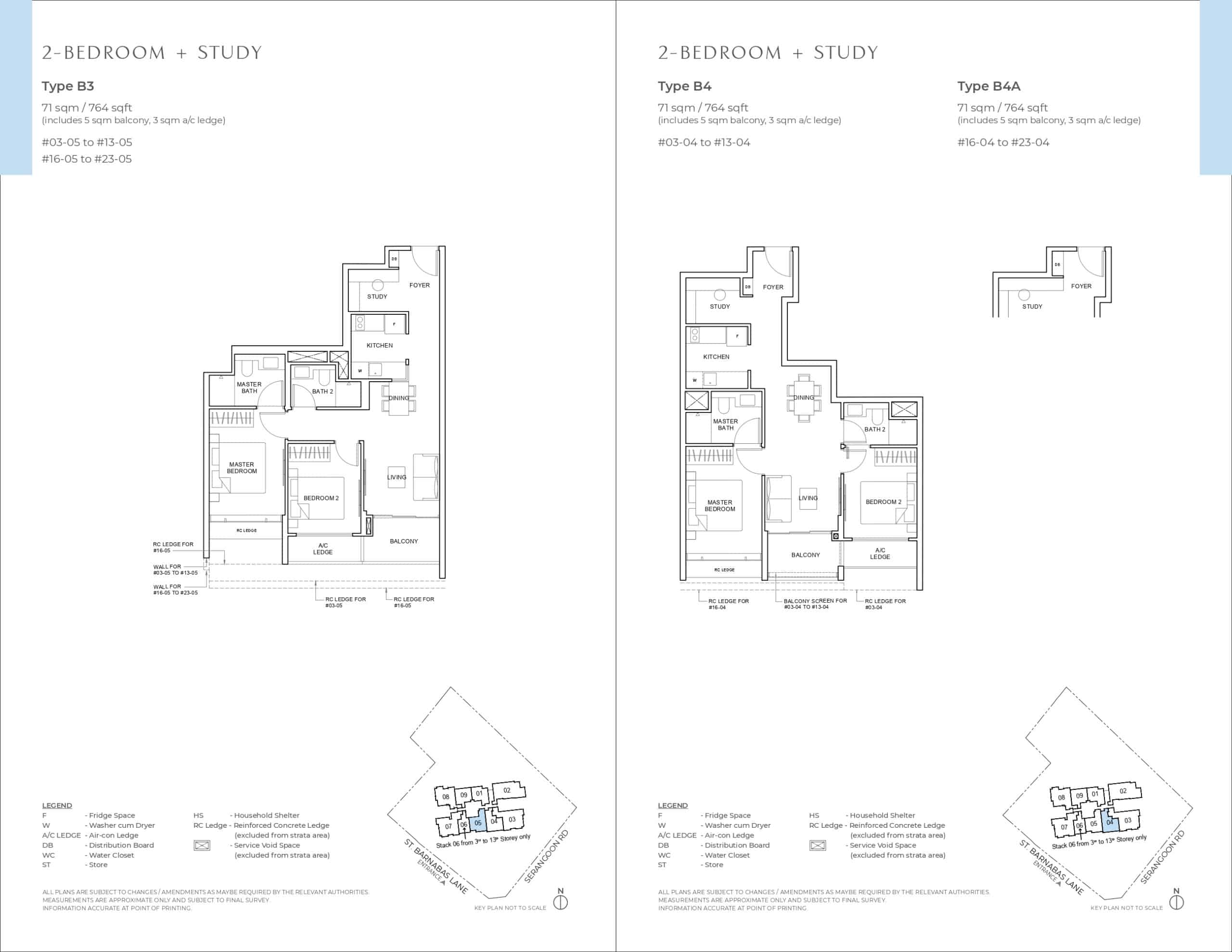 | 2 Bedroom + Study | B3/B4/B4a | 38 | 70 | 753 |