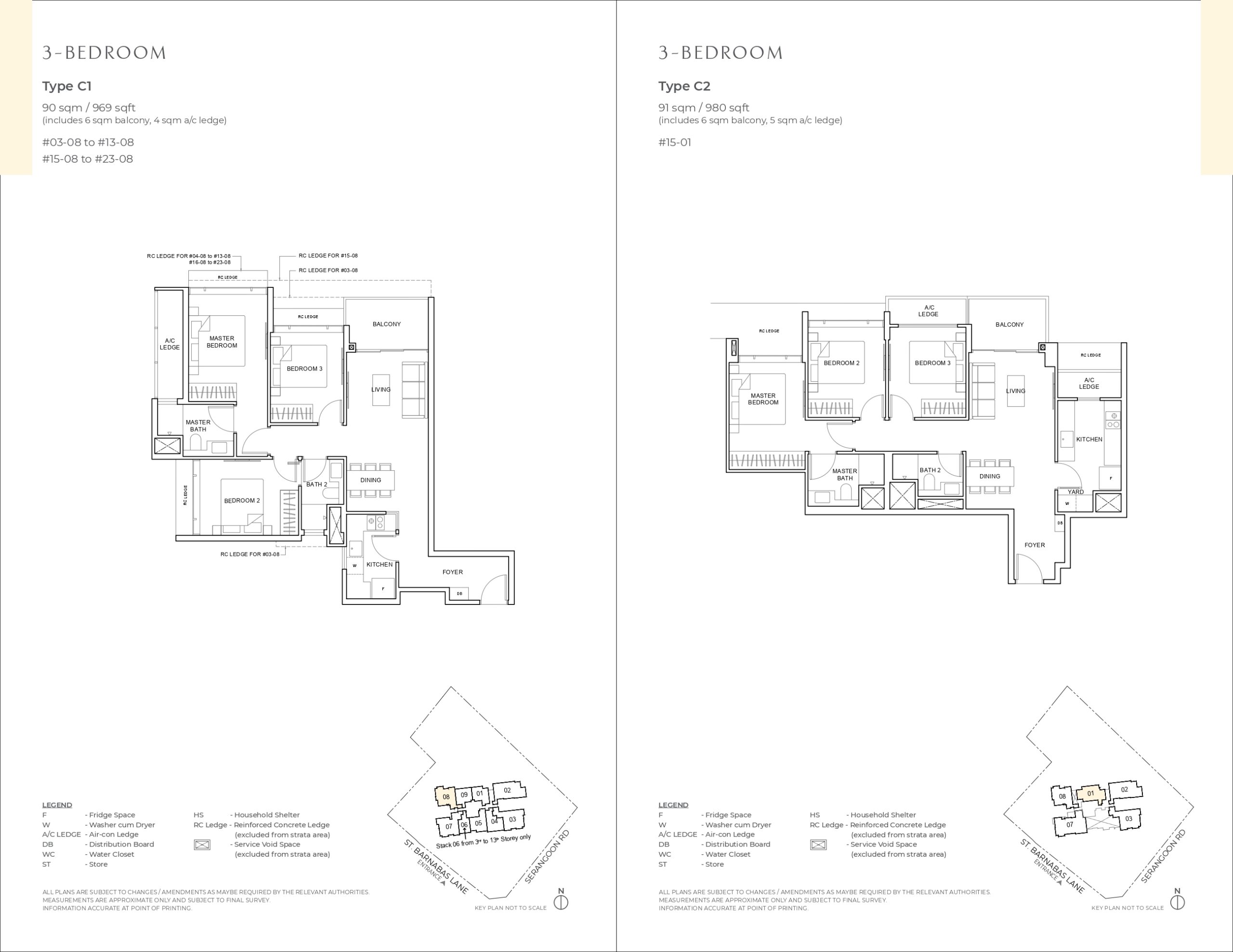 | 3 Bedroom | C1/C2 | 21 | 90 | 969 |