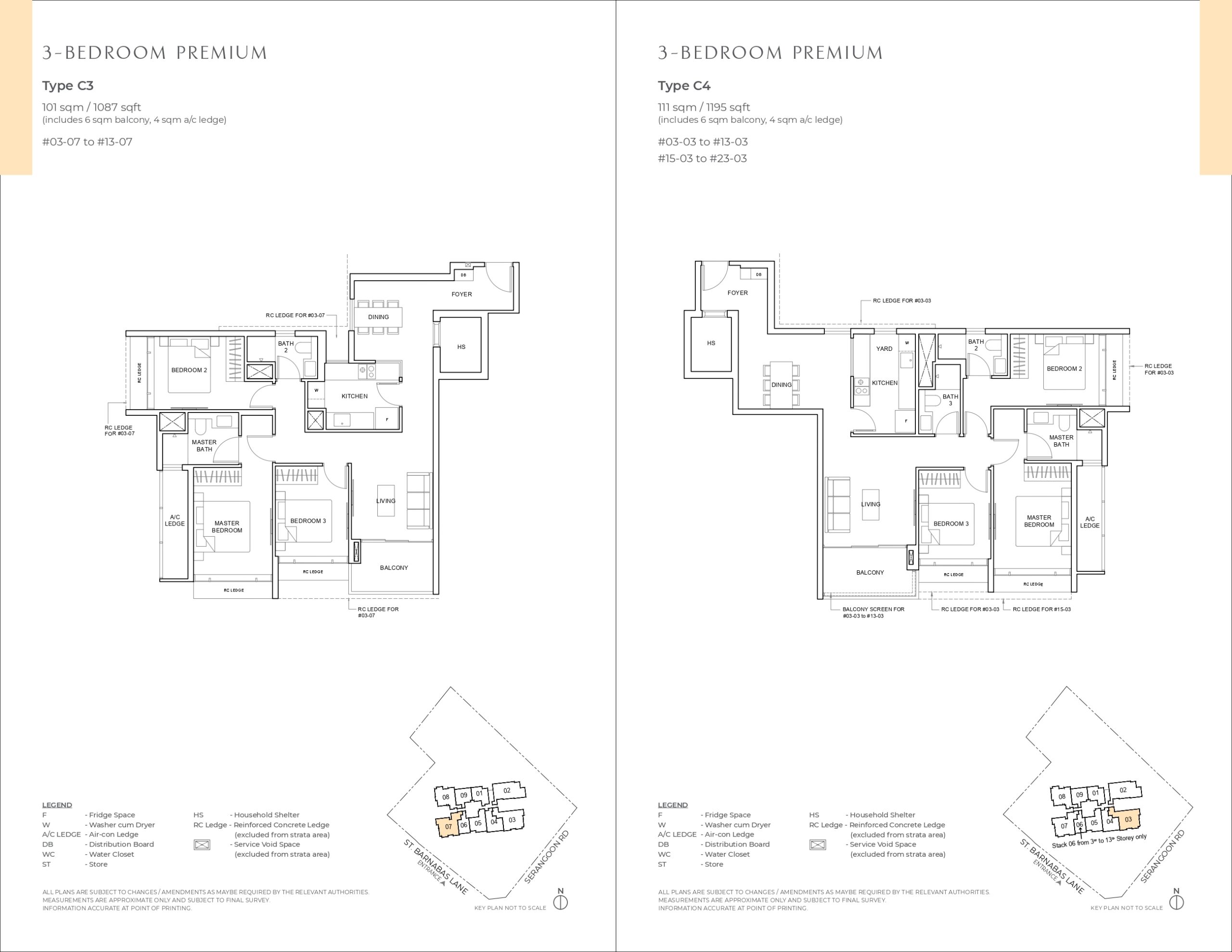 | 3 Bedroom + Household Shelter | C3/C4 | 31 | 101/110 | 1,087/1,184 |
