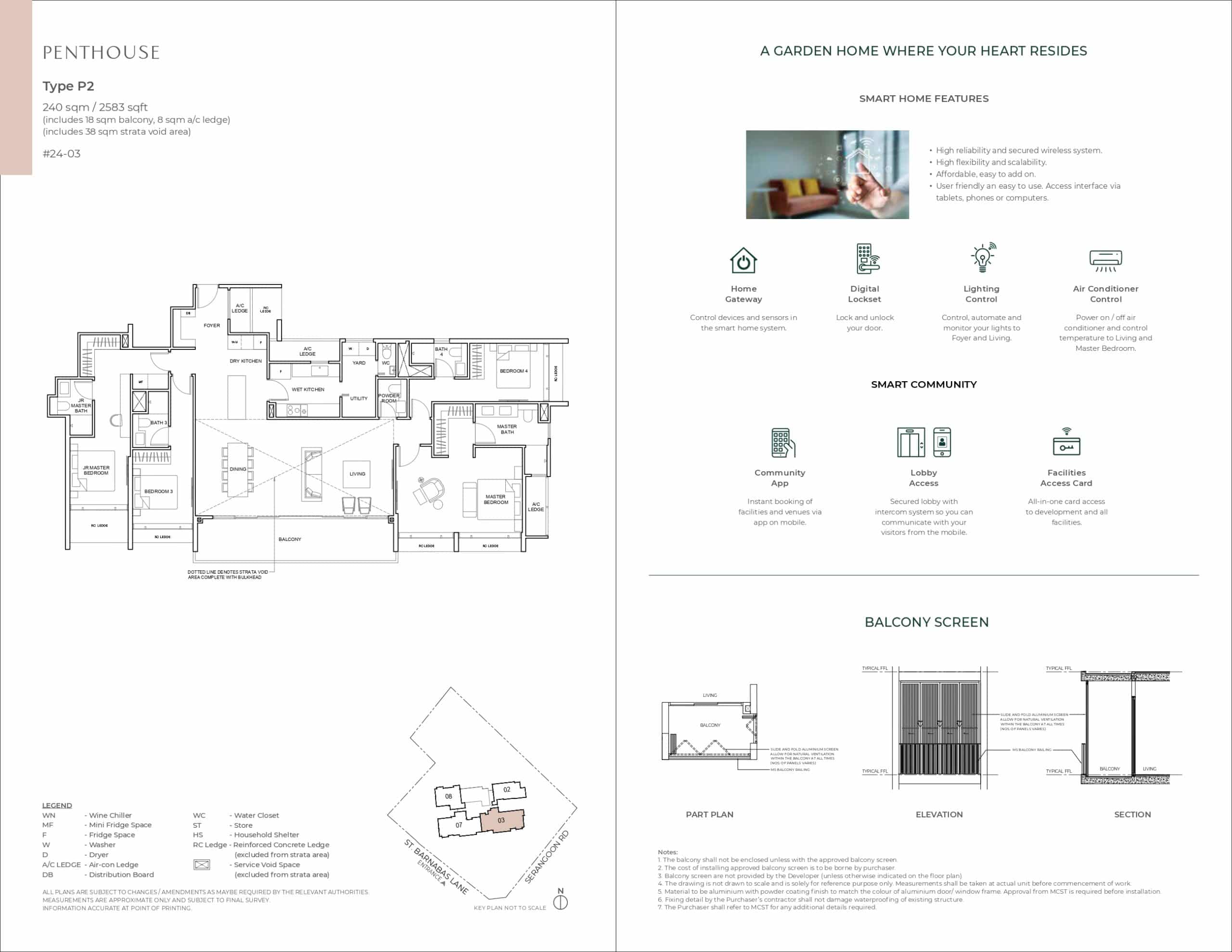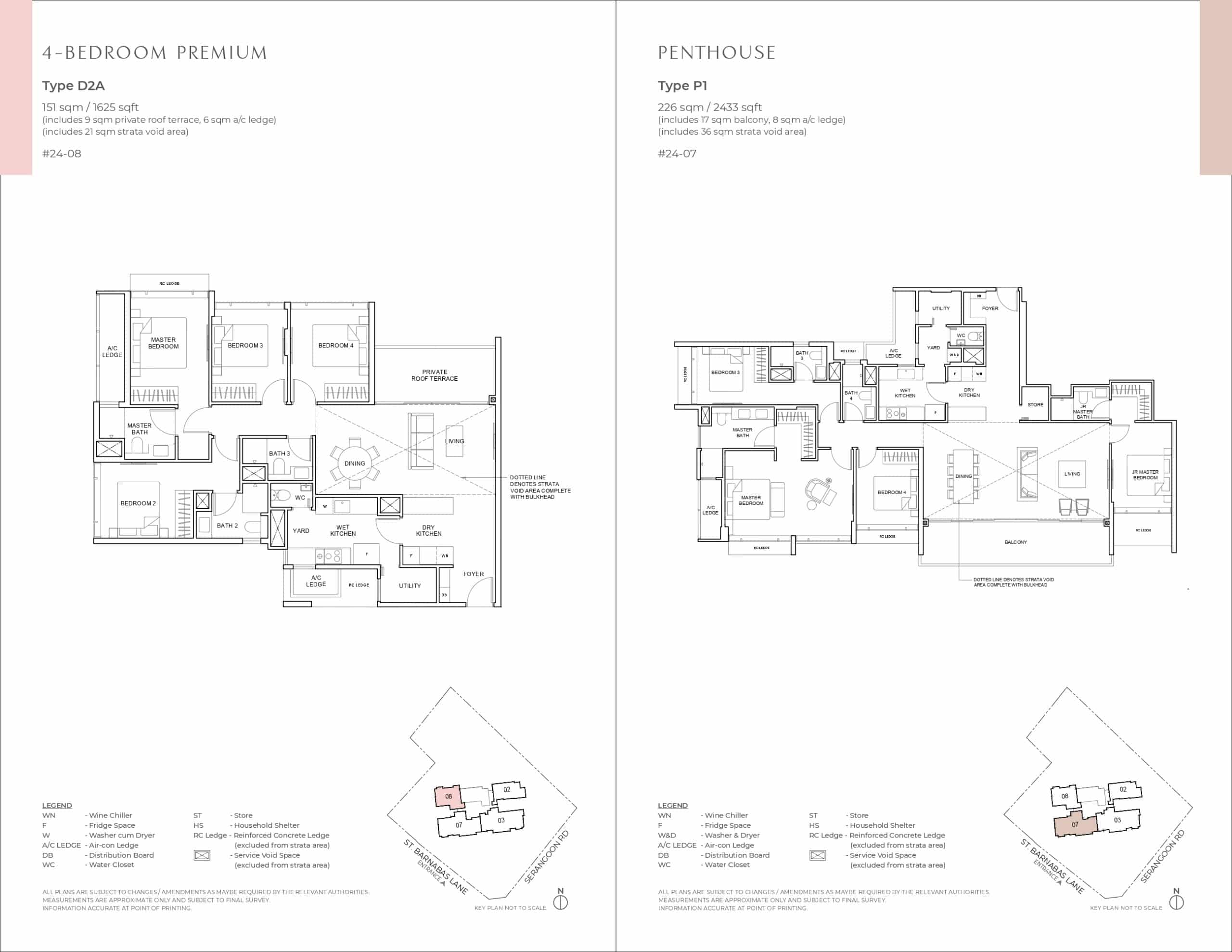 | Penthouse 4 Bedroom | E1P/E2P | 2 | 227/241 | 2,443/2,594 |