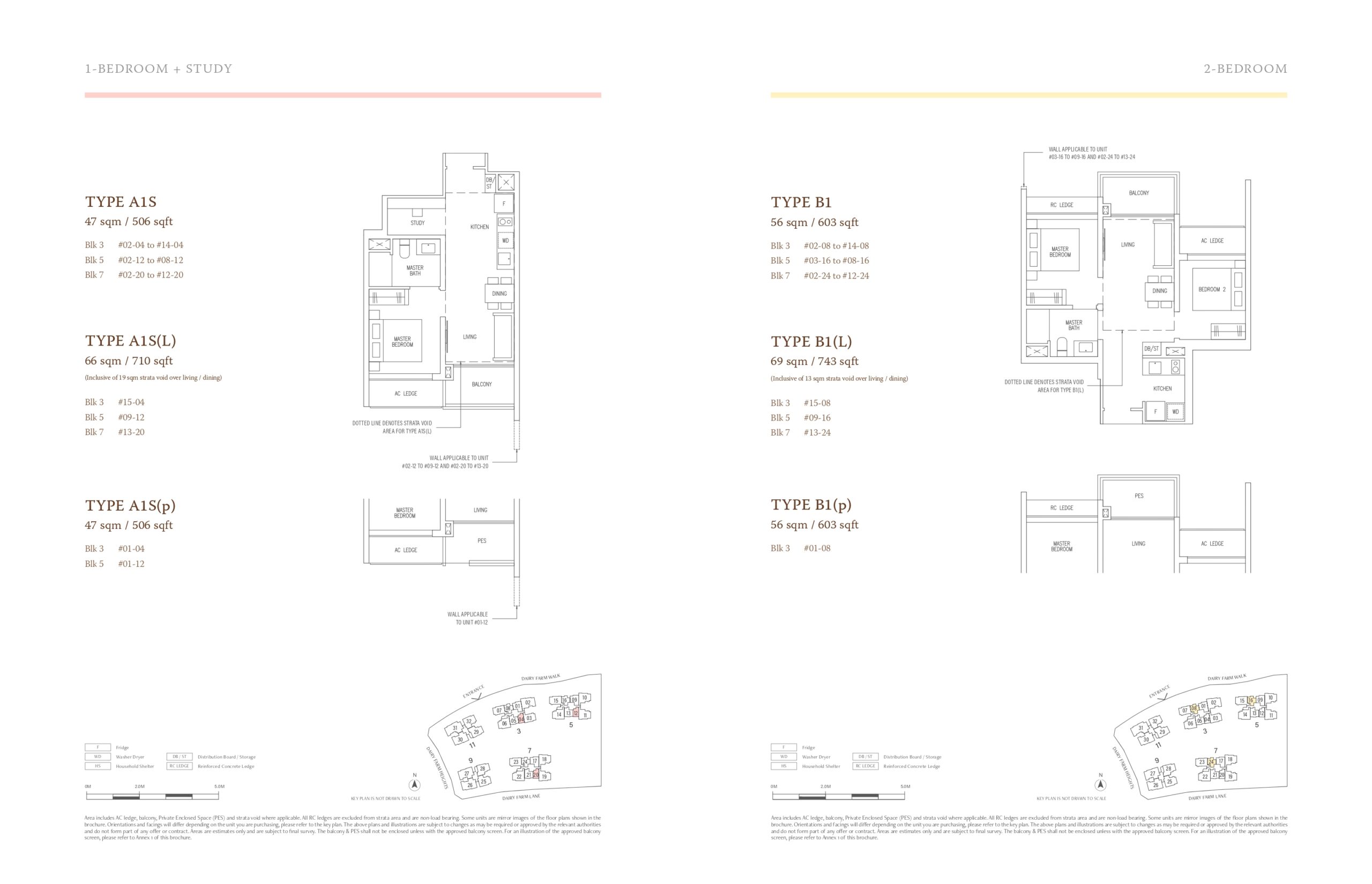 | 1 Bedroom + Study | A1S | 36 | 47 | 506 |
