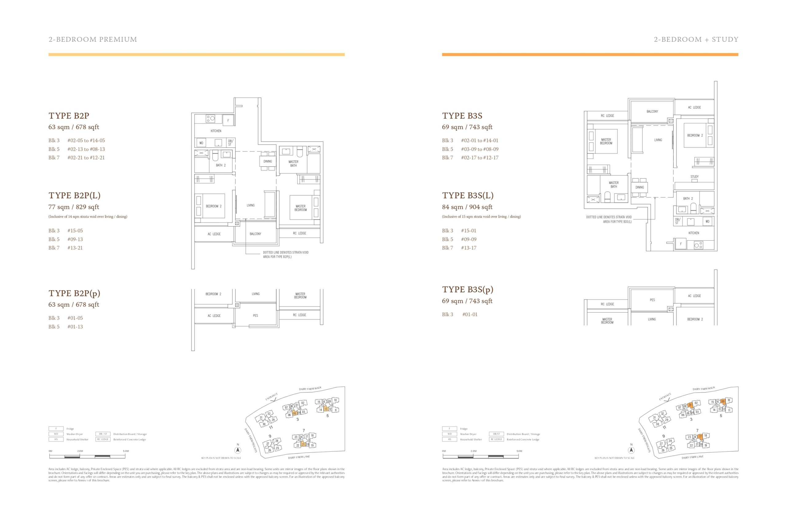 | 2 Bedroom + Study | B3S | 34 | 69 | 743 |