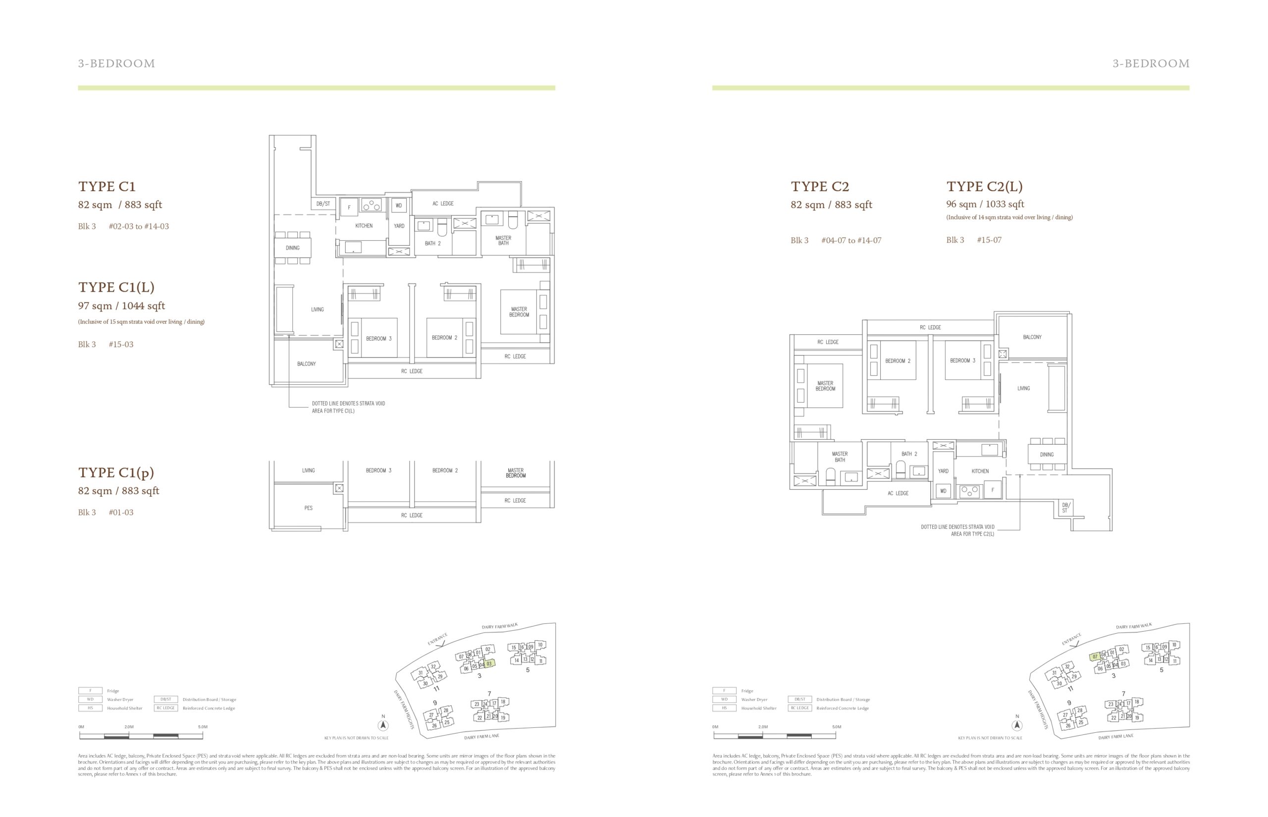 | 3 Bedroom | C1/C2/C3 | 883 / 926 | – | – |