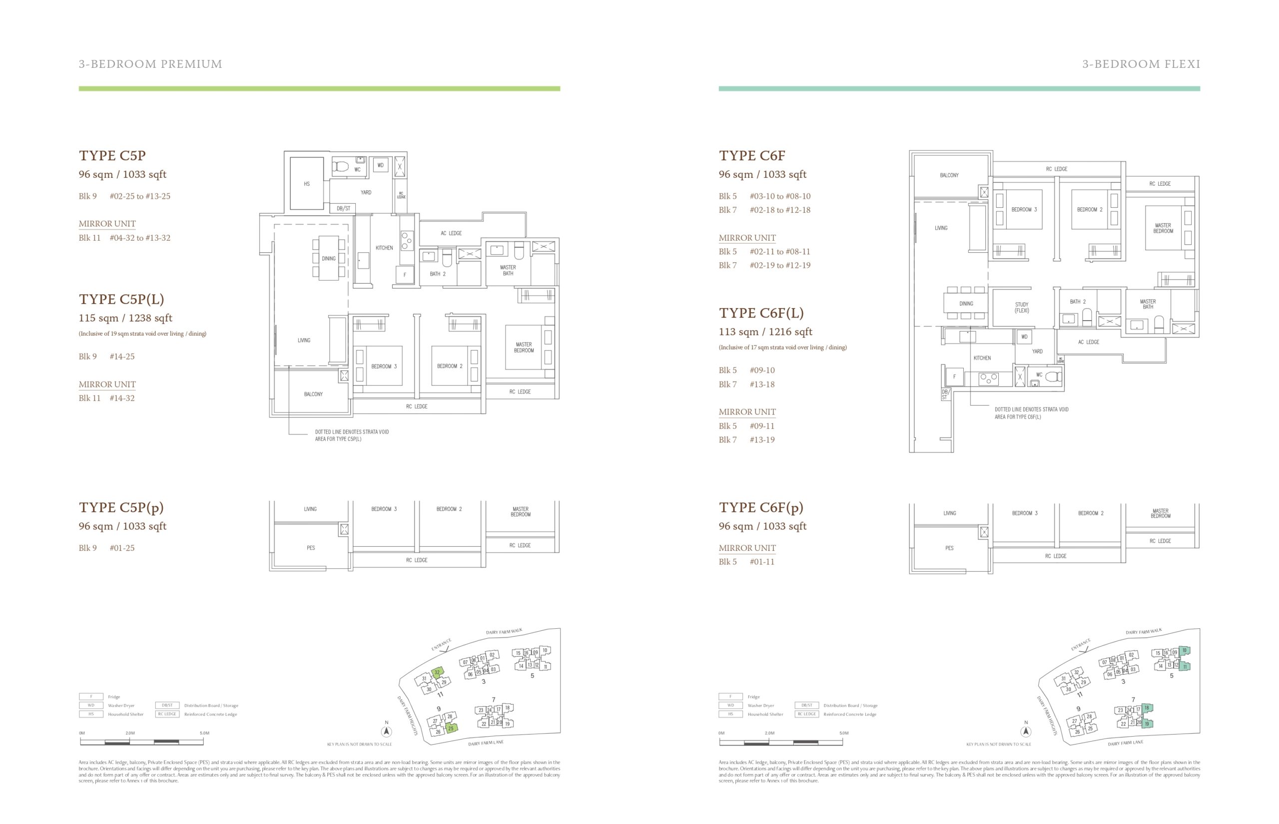 - Type C6F: 3 Bedroom Flexi, 96 m² (1,033 sq ft)