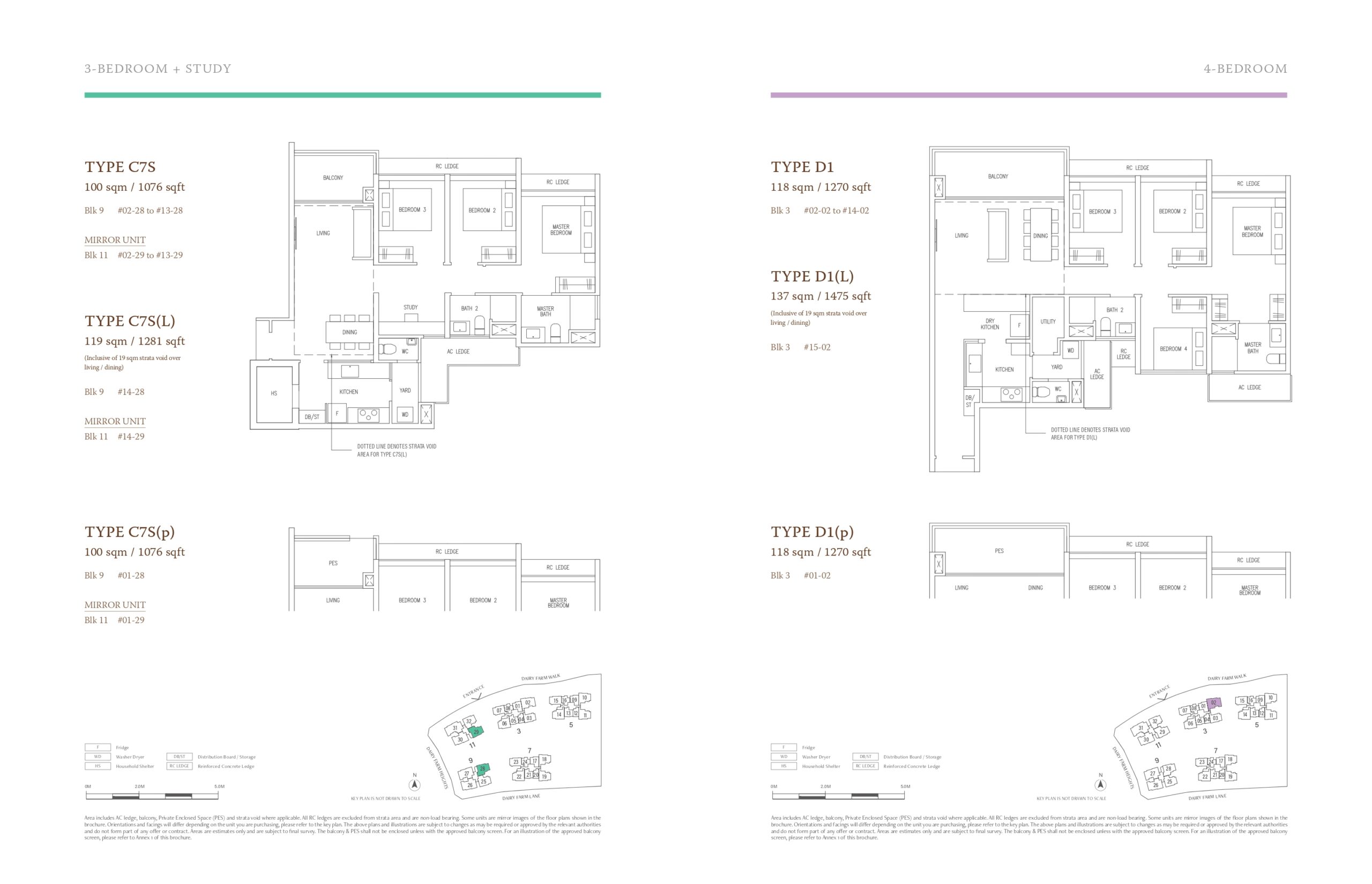 | 3 Bedroom + Study | C7S | 28 | 100 | 1,076 |