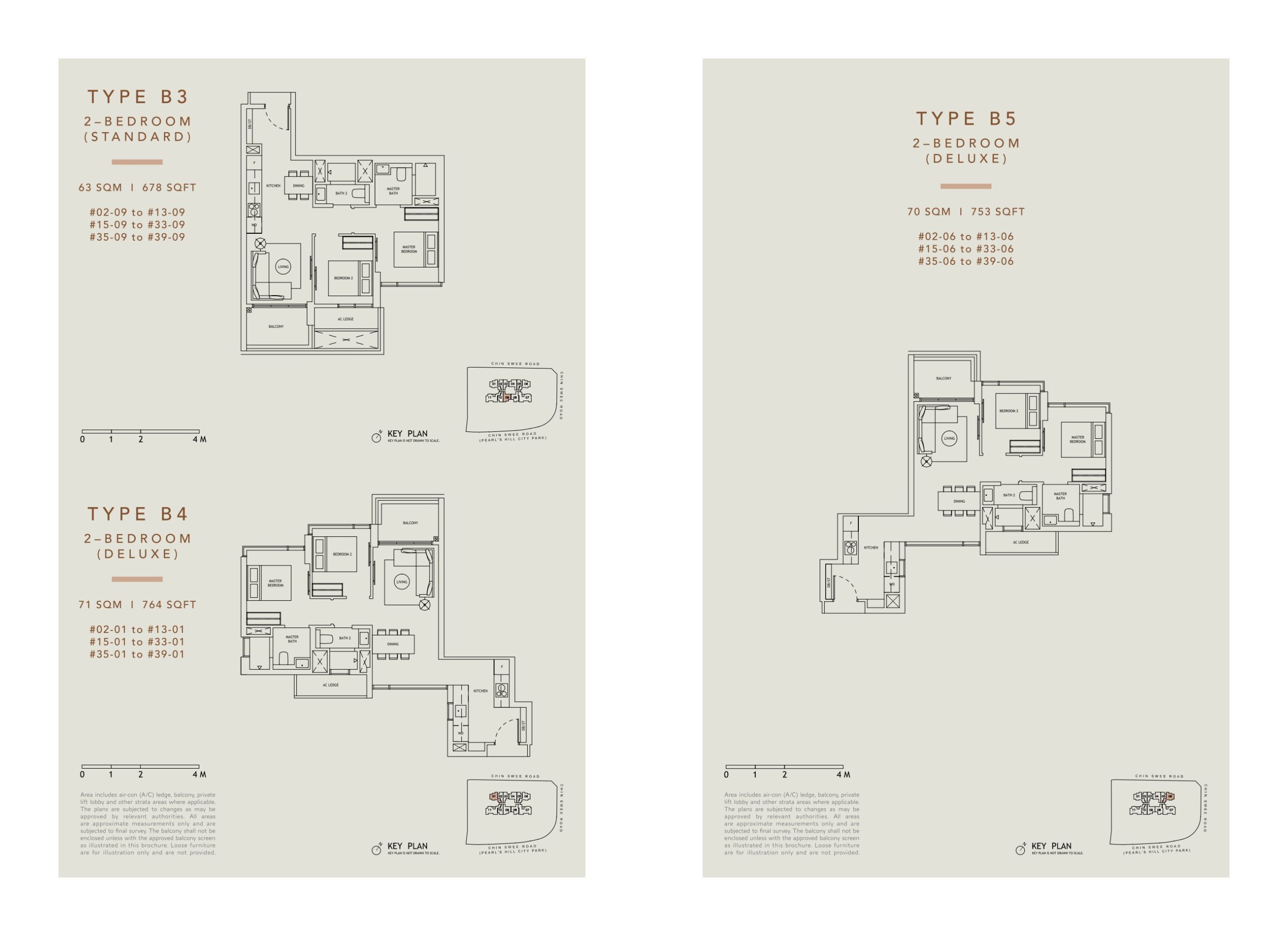 - Two Bedroom: Type B3, 63 m² (678 sq ft)
