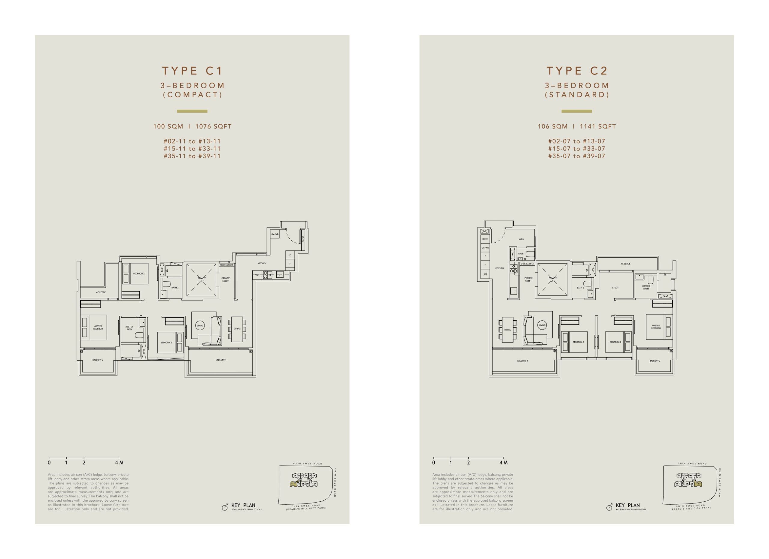 - Three Bedroom: Type C2, 106 m² (1,141 sq ft)