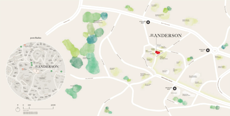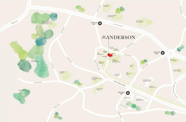 21 Anderson is tucked away in the coveted District 10, one of Singapore’s most sought-after neighbourhoods due to its strategic location, lush surroundings, and proximity to key regions like the famed Orchard Road shopping belt. Stevens MRT station is a 10-minute walk away, while other major stations like Orchard and Newton are also within walking distance, allowing residents to quickly access the Downtown and Thomson-East Coast lines and seamlessly connect to the Central Business District, Marina Bay area, and other key regions.Â