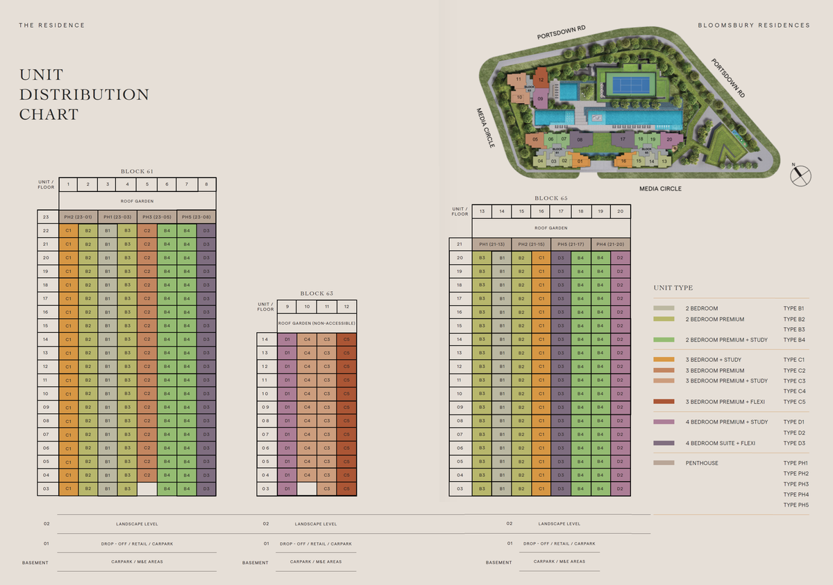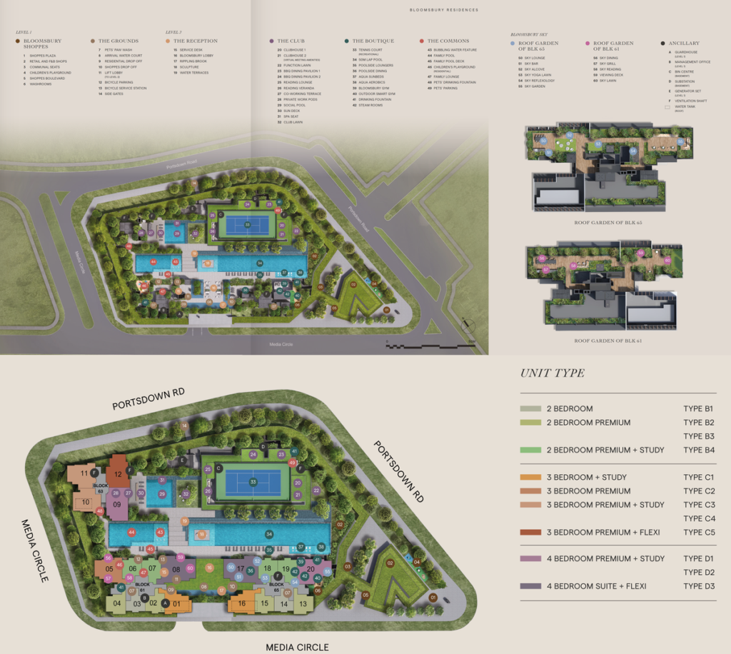 Bloomsbury Residences is a newly launched, mixed-use development located at 61, 63, and 65 Media Circle Road, right in the heart of Singapore’s exciting One-North neighbourhood, surrounded by thriving business and research centres. The development caters to urban professionals, locals and expats alike, who want a perfect combination of modern amenities, a strategic location, and top-quality facilities. Estimated to TOP in Q1 2029, Bloomsbury will comprise an estimated 358 residential units, making it the biggest project in the neighbourhood and a highly anticipation addition to Singapore’s property landscape.Â