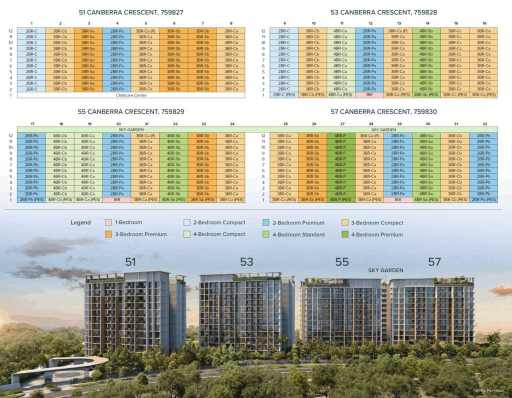 Canberra Crescent Residences is a newly launched residential development located at 51, 53, 55, and 57 Canberra Crescent in the northern region of Singapore. It has an expected 376 units and is due to TOP in April 2030. Surrounded by convenient amenities and nature parks, this project is highly anticipated by those seeking a mix of modern living and recreational opportunities. In Singapore’s competitive property market, Canberra Crescent Residences has attracted the attention of homebuyers and investors alike.Â