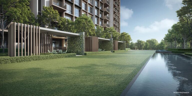 Facilities include four swimming pools, gym, tennis courts, jogging tracks, fitness corners, clubhouse, BBQ pavilions, playgrounds, onsite childcare and 24 hour security. Units come with smart home features and quality fittings such as Bosch appliances and Hansgrohe bathroom wares. Nearby are primary and secondary schools and Overseas Family School.