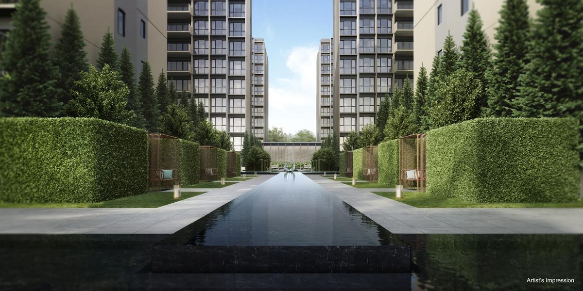Facilities include four swimming pools, gym, tennis courts, jogging tracks, fitness corners, clubhouse, BBQ pavilions, playgrounds, onsite childcare and 24 hour security. Units come with smart home features and quality fittings such as Bosch appliances and Hansgrohe bathroom wares. Nearby are primary and secondary schools and Overseas Family School.