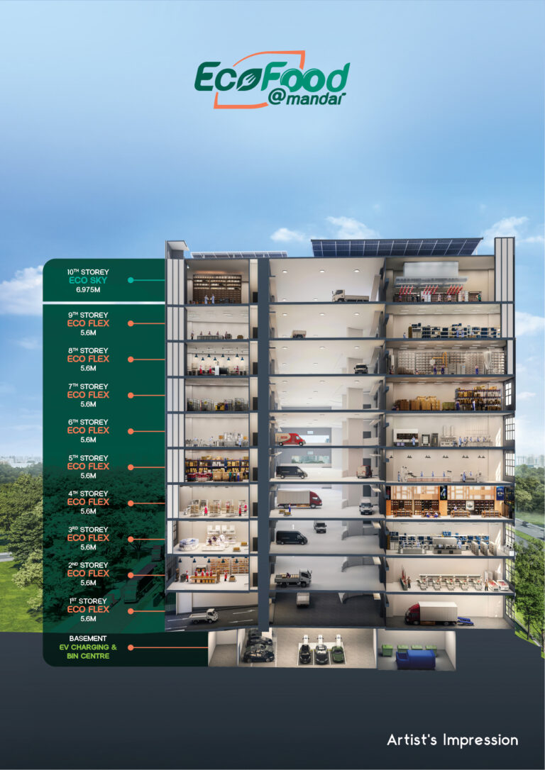 EcoFood @ Mandai is located within a mature, established industrial estate with a ready supply of business partners and suppliers. Its proximity to numerous MRT stations gives employees and visitors an easy way to access the facility and support efficient logistics and movements. The development’s focus on food-related trades is driven by Singapore’s strict emphasis on food security and local production.Â