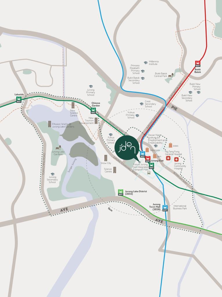 J’den is right next door to Jurong East MRT Interchange which serves the North-South, East-West, and upcoming Jurong Region lines, offering residents excellent connectivity for travel throughout Singapore. The bus routes that serve the area further enhance public transportation options.