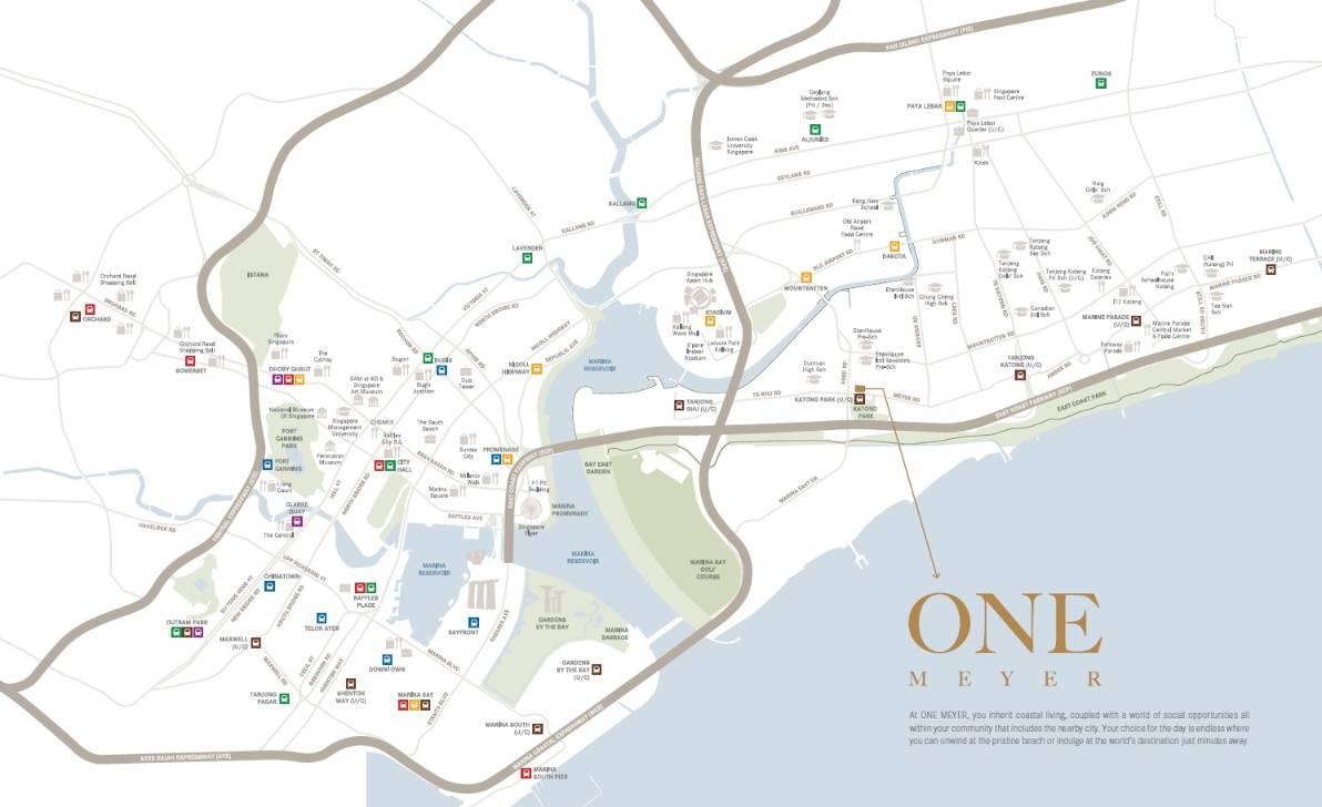 One Meyer sits in the heart of District 15, a prestigious residential enclave that’s popular with those seeking the peaceful nature of Singapore’s East Coast. With Katong MRT just 110 metres away, residents enjoy excellent connectivity to major destinations like the Central Business District, Marina Bay, and Orchard Road. Mountbatten and Dakota are also within walking distance.