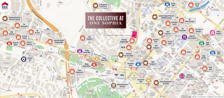 The location of One Sophia stands at 1 Sophia Road in District 9 within the Orchard Dhoby Ghaut precinct near Plaza Singapura and The Atrium at Orchard. The Bencoolen DTL station together with Dhoby Ghaut NSL NEL CCL and Bras Basah CCL stations are located within a 500-meter radius which provides access to the CBD and Marina Bay area.