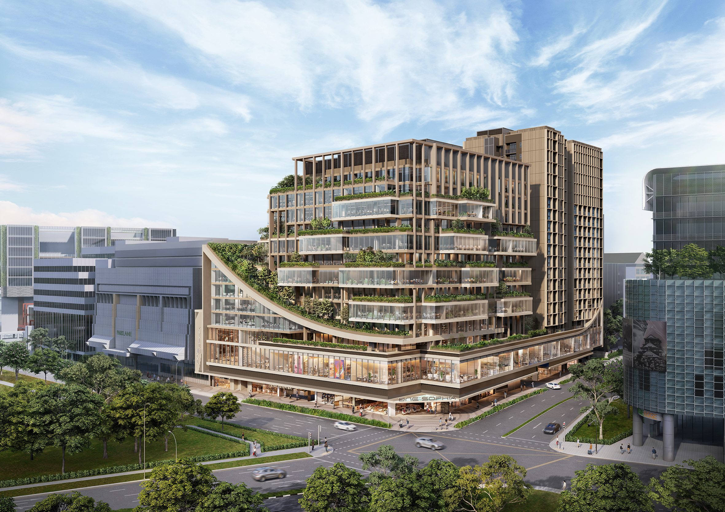 The site combines residential units with retail spaces and 122 office units while achieving TOP status by December 2029. The available unit sizes range from studios at 431 to 452 sq ft and one-bedroom units at 484 to 549 sq ft and two to four bedroom configurations. The facilities at this development include lap and spa pools together with a gym and gardens and lounges and outdoor fitness and BBQ areas and rooftop dining and integrated retail at ground level.