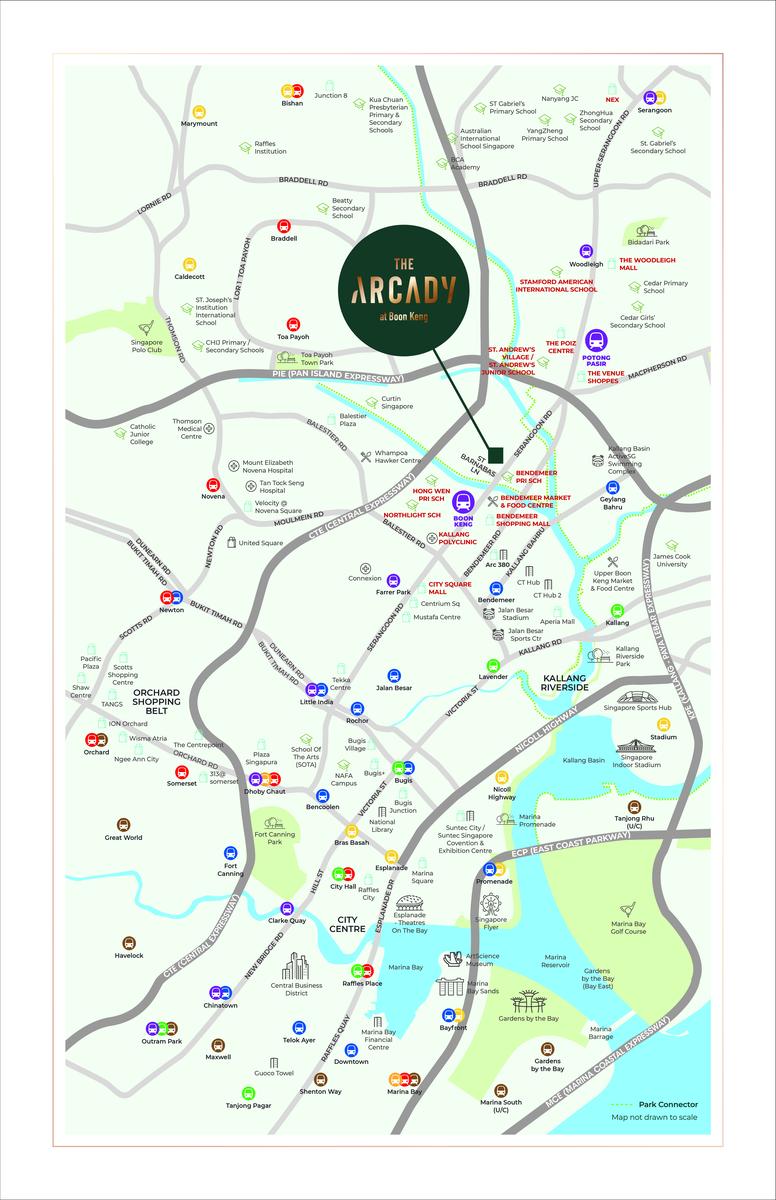 The Arcady at Boon Keng is strategically situated in District 12, offering residents exceptional connectivity Boon Keng MRT Station being just a 5-minute walk away. In addition, Geylang Bahru MRT and Bendemeer stations are also within walking distance.Â