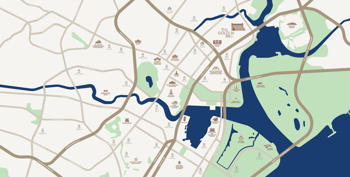 Situated in the heart of District 7 on the city’s fringe, The Golden Mile enjoys a prime position along Beach Road and Kampong Glam, an area treasured for its rich heritage, numerous dining and entertainment choices, and position as a cultural hub. With Nicoll Highway MRT station a 5-minute walk away and Lavender MRT 10 minutes away, residents enjoy quick connectivity to the Central Business District, Orchard Road, Marina Bay, and other key regions in Singapore.Â