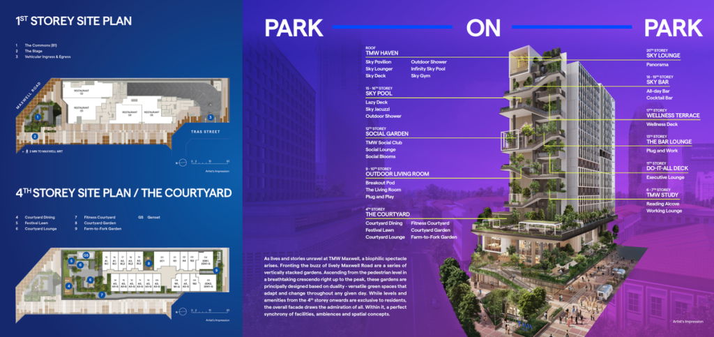 TMW Maxwell is a 20-storey mixed-use development that will feature 11 commercial units and an estimated 324 residences. Strategically located near three MRT stations, Maxwell, Tanjong Pagar, and Telok Ayer, residents will enjoy excellent connectivity to Singapore’s efficient public transportation system. Scheduled for completion in 2028, TMW Maxwell is a highly anticipated addition to one of Singapore’s busiest and most prestigious neighbourhoods, District 2.